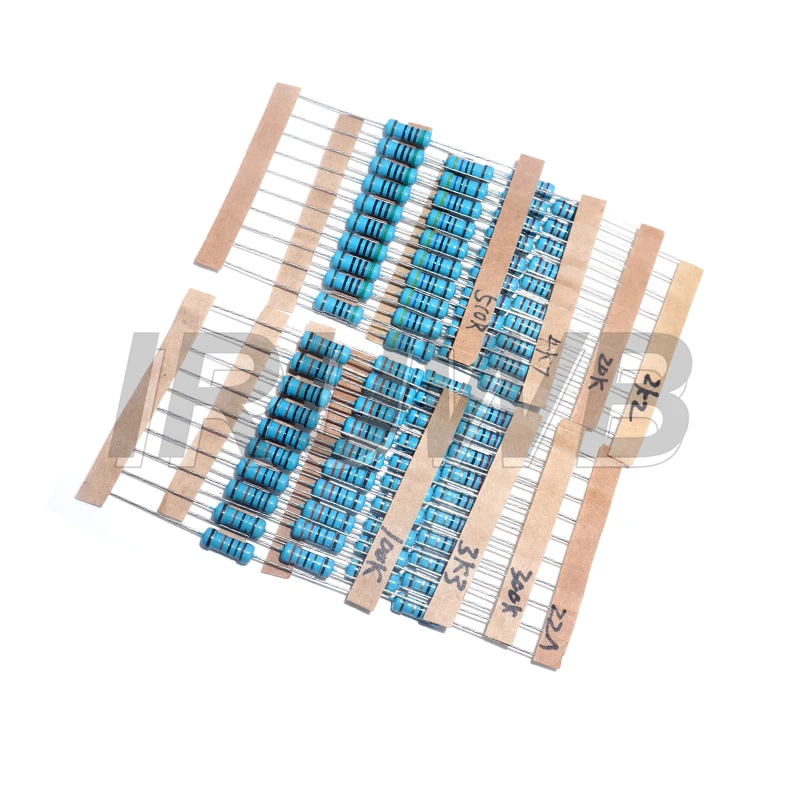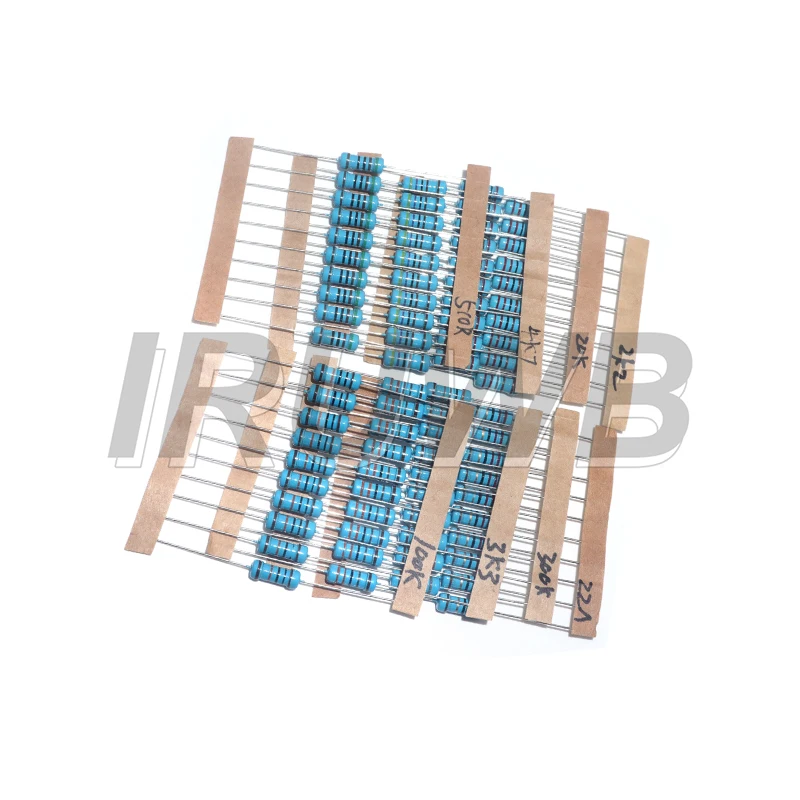 - Constructed with a sleek cylindrical design, the resistors have smooth metal film surfaces marked by colorful bands for easy resistance identification and quick reference.