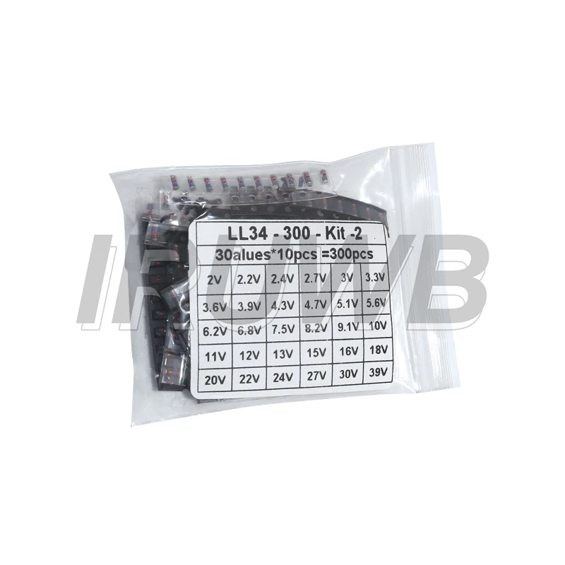 - Includes 300 surface-mount diodes: 100% brand new, organized in a clear, resealable bag for easy access. The set contains 1N4148 and Zener diodes with specified voltage ranges for versatile use.