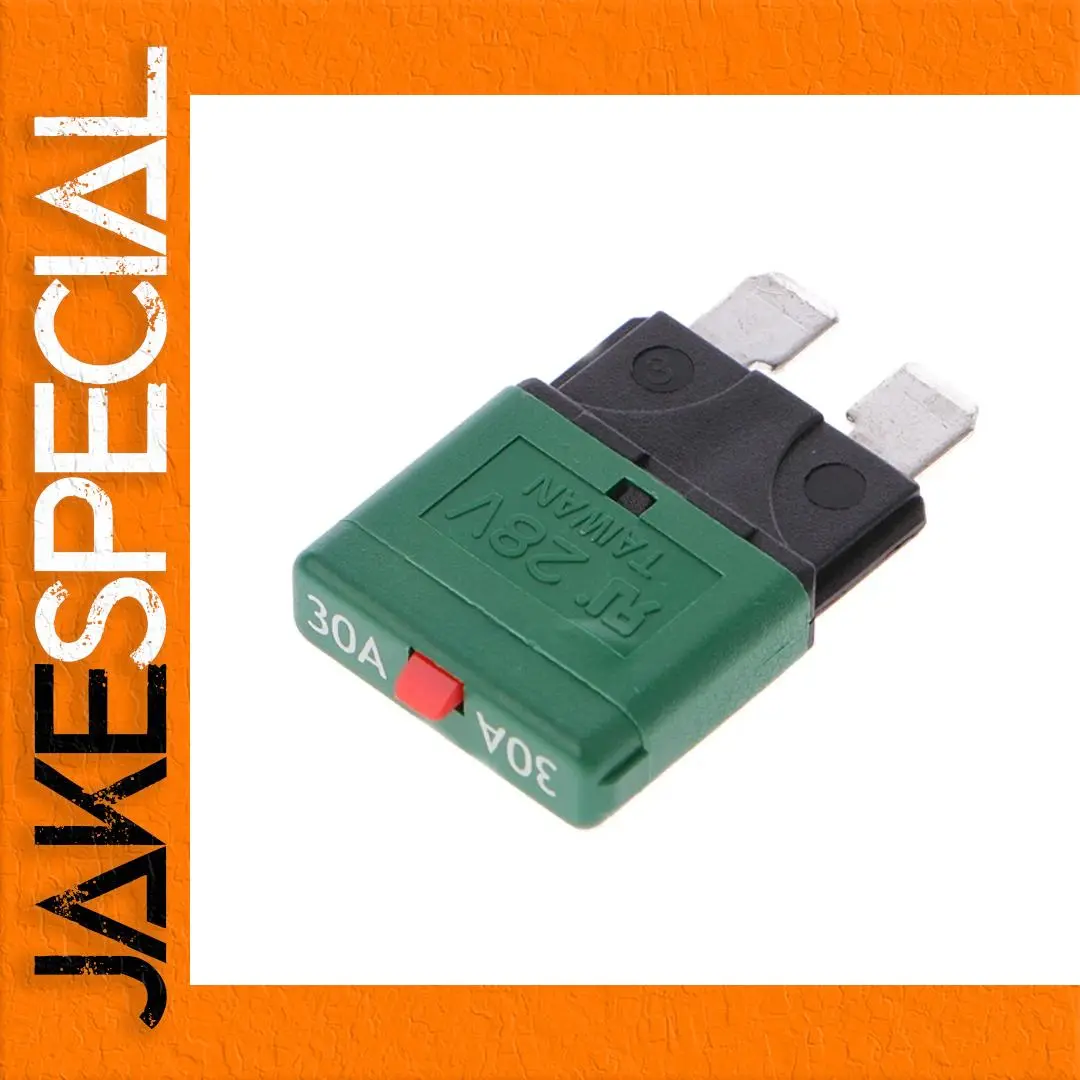 This 5-30A Circuit Breaker Blade Fuse is the perfect solution for automotive enthusiasts who value efficiency and reliability. With its compact and ergonomic design, it easily fits into standard automotive fuse slots, ensuring that you have a dependable circuit protection option. The vibrant green body features a matte finish, complemented by a prominent white “30A” label and a striking red manual reset switch, making it both visually appealing and practical. Rated for a maximum voltage of 28V DC, it accommodates 12 and 24-volt applications, guaranteeing versatility for various automotive uses, including race cars. Upgrade your vehicle’s electrical system and experience peace of mind with this essential fuse.