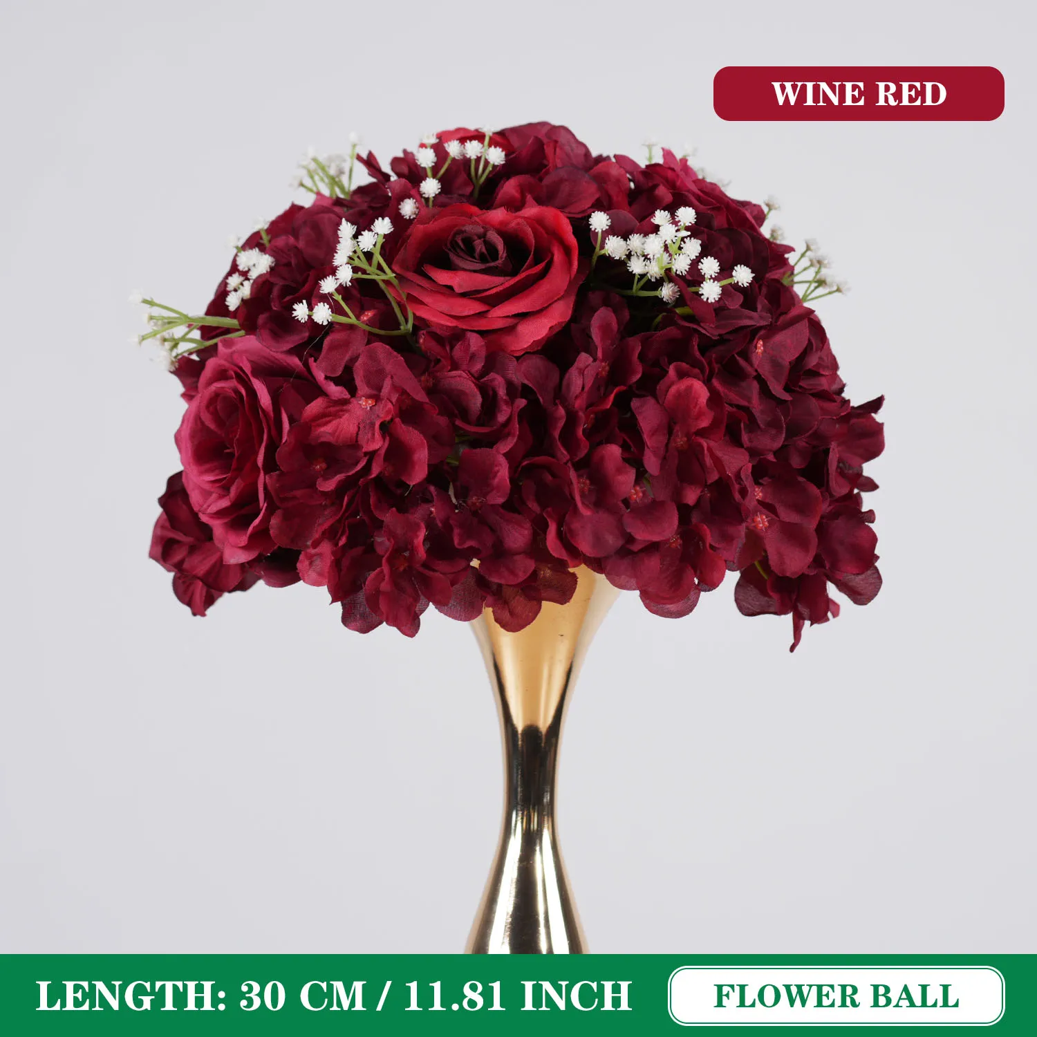 Create a stunning floral ambiance with this 30cm artificial flower sphere, crafted from high-quality plastic and silk, featuring a vibrant simulated hydrangea and rose ball design. Available in customizable colors including blue, burgundy, coffee, deep blue, deep purple, light pink white, pink, pink white, purple white, red, red pink, white, and white purple, this versatile decoration is perfect for weddings, parties, Christmas, birthdays, and outdoor garden settings. Its elegant spherical shape and luxurious full bloom appearance make it suitable for various occasions such as anniversaries, baby showers, bridal showers, engagements, graduations, and housewarmings. Elevate your event with this sophisticated, maintenance-free floral accent.