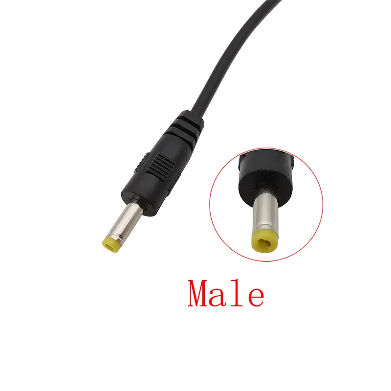 - The 4.0mm x 1.7mm male plug features a polished metal tip with a yellow insulating ring, clearly indicating positive polarity and ensuring accurate connection with compatible devices.