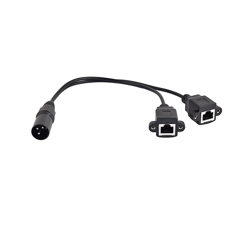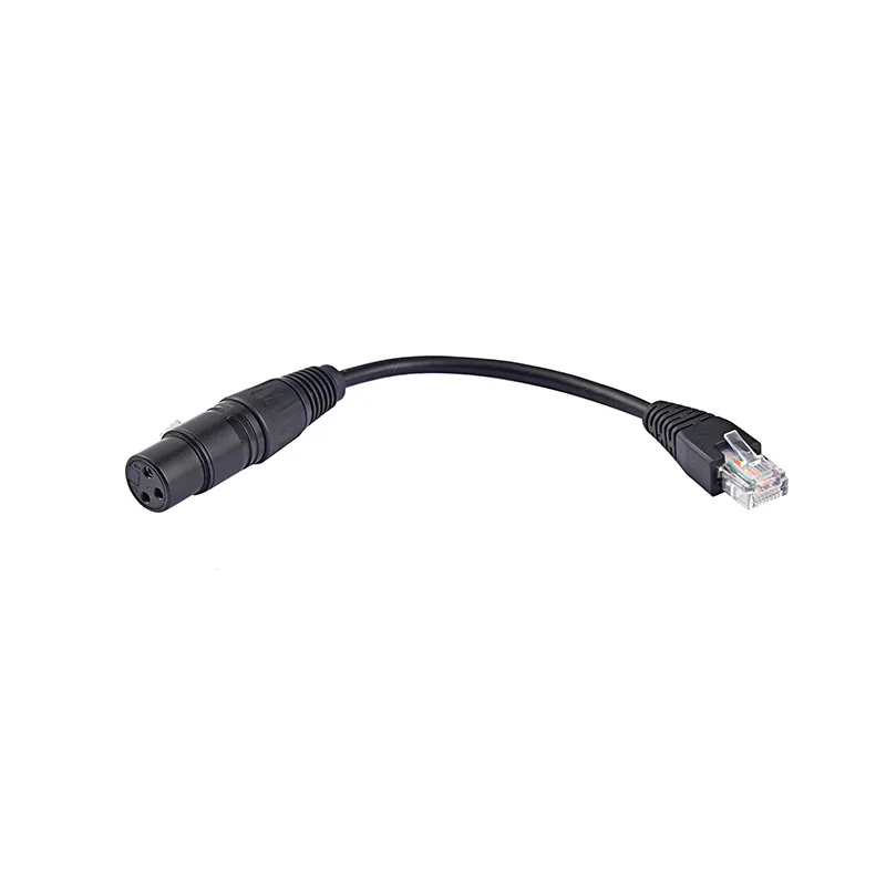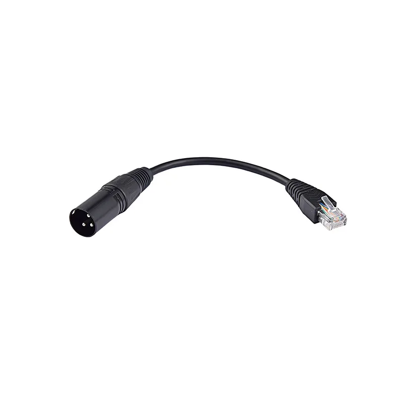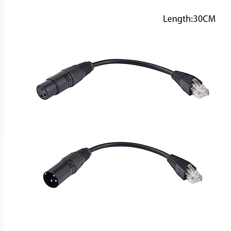 Experience seamless connectivity with this durable and reliable 30cm cable adapter designed for professional audio, visual, and networking setups. Featuring a sleek black finish, it combines a male Cannon 3-core plug with a female RJ45 connector, allowing for efficient signal transfer between different systems. Crafted with high-quality 16/0.12tc*1.2 PVC wires twisted with aluminum winding, it ensures stability and minimal interference. The robust 5.0mm diameter casing enhances durability, making it an ideal choice for power amplifiers, mixers, KTV equipment, lighting, and sound systems. Its compact size and industrial design make installation straightforward, giving you a clean, professional look while maintaining optimal performance. Perfect for live events, studio setups, and stage lighting configurations, it streamlines your connections effortlessly.