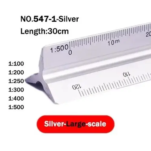 The 30cm Triangular Scale Ruler is your essential tool for precise drafting, expertly crafted with a dual construction of polished metal and durable plastic. Available in vibrant colors like golden, silver, and black, this ruler not only looks professional but also ensures stability and readability, making it the ideal companion for architects and engineers. With clear measurement scales ranging from 1:20 to 1:500, each edge features sharp, well-defined markings that enhance accuracy in your work. Embrace this innovative ruler as a cornerstone for your design projects, showcasing professionalism and attention to detail in every measurement.