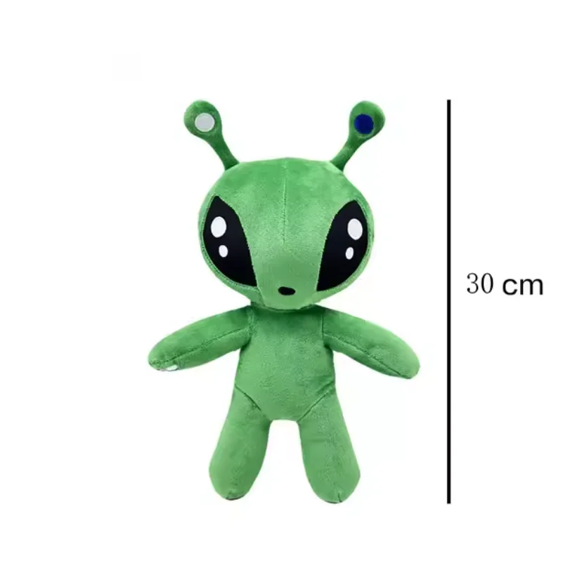 Imagine cuddling this charming 30cm plush toy that brings a playful extraterrestrial friend into your collection. Crafted with vibrant bright green cotton fabric, its smooth, soft surface invites you to hug or display it proudly. The large, rounded head features expressive black oval eyes, accented with white highlights that add a cute yet slightly eerie charm. Its flexible antennae, tipped with playful gray and blue circles, give it a whimsical, cartoonish appeal. The plush boasts a simple, rounded body with short arms and legs, making it perfect for sitting or hugging. Whether you're a fan of anime, horror, or sci-fi themes, this plush toy's unique aesthetic makes it a must-have for collectors seeking a supernatural touch to their decor or comfort items.