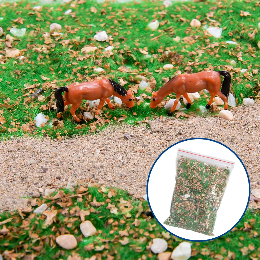 Transform your model landscapes with the 30g package of model scene static grass cluster powder (Model Number: HDD-DMC) designed for DIY landscape building and sand table layouts. This vibrant mixture features light green and dark green plastic grass, interspersed with organic brown and beige elements that resemble dried leaves or petals, enhancing realism. The inclusion of small stones in white to light gray offers additional texture and detail, making it perfect for creating dynamic, natural-looking ground cover. Ideal for various model scenarios, this product will elevate your dioramas and building layouts to new heights of authenticity.