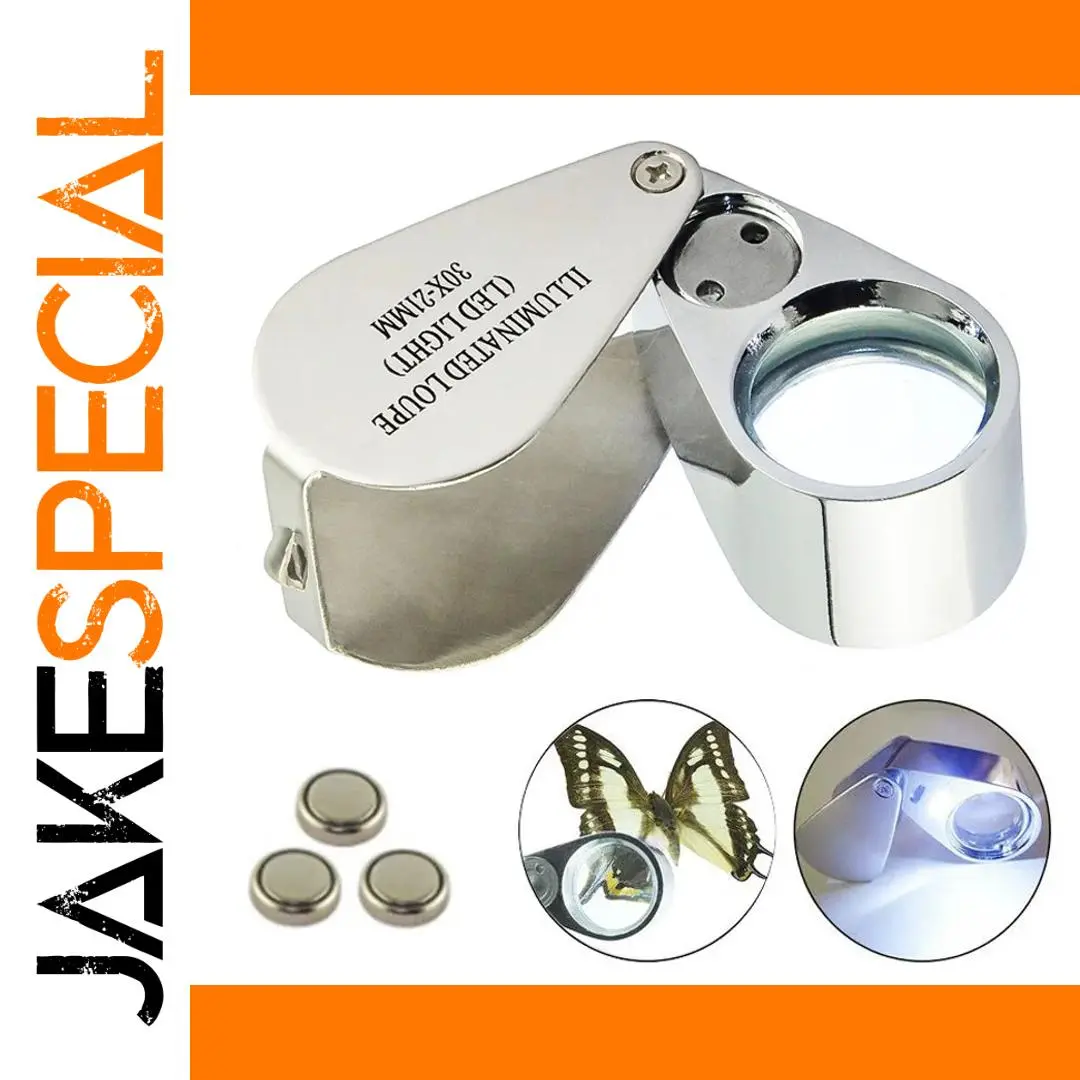 Immerse yourself in the precision of this this 30X Jewelry Magnifying Glass, designed with all-metal construction for durability and elegance. Equipped with two LED lights, it ensures optimal illumination for detailed inspections of jewelry, gemstones, or fine craftsmanship. Its compact, handheld style makes it easy to carry and use anywhere, whether you're an enthusiast, collector, or professional. Feel confident in your ability to appreciate every tiny detail, thanks to its powerful triplet glass lens that provides clear, distortion-free magnification. With this tool, discovering the beauty and quality of your jewelry has become effortless, making it an essential addition to your collection. Experience the fusion of style, function, and trust with this reliable magnifier.