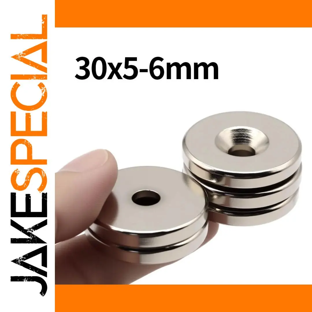 Experience the power and reliability of this set of high-quality neodymium magnets, perfect for a variety of industrial and DIY applications. Crafted from durable N35 grade NdFeB material, these magnets feature a sleek, metallic silver finish with a polished surface that reflects light beautifully, enhancing their modern appeal. Each magnet measures 30×5-6mm, with precisely centered holes for versatile use. Available in sets of 1, 2, 5, or 10 pieces, they are designed with smooth, rounded edges for a seamless look and safe handling. Their robust construction and high magnetic strength ensure they will serve your needs reliably across countless projects.