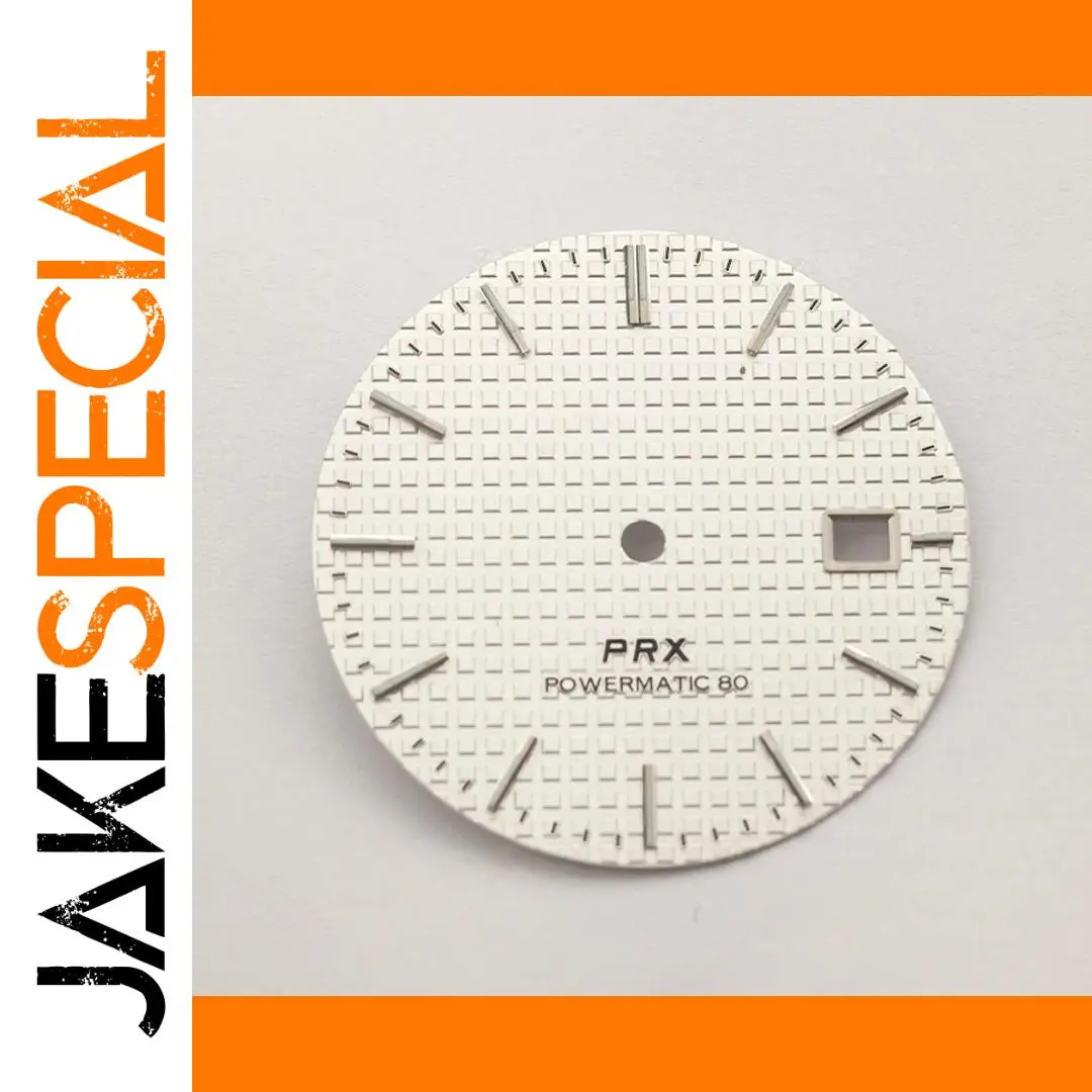 This exquisite 31.8mm watch dial is designed to transform your NH35, NH36, NH38, or similar movement watch into a stylish masterpiece. With a sophisticated white textured surface and refined grid pattern, this dial adds modern elegance to any timepiece. The elongated luminous hour markers not only enhance visibility in low-light conditions but also bring a sleek, contemporary flair to your wrist. Featuring the “PRX” branding and “POWERMATIC 80” inscription, it encapsulates precision and style. Visualize the compliments you'll receive as this dial captures attention, making your watch truly stand out in any setting.
