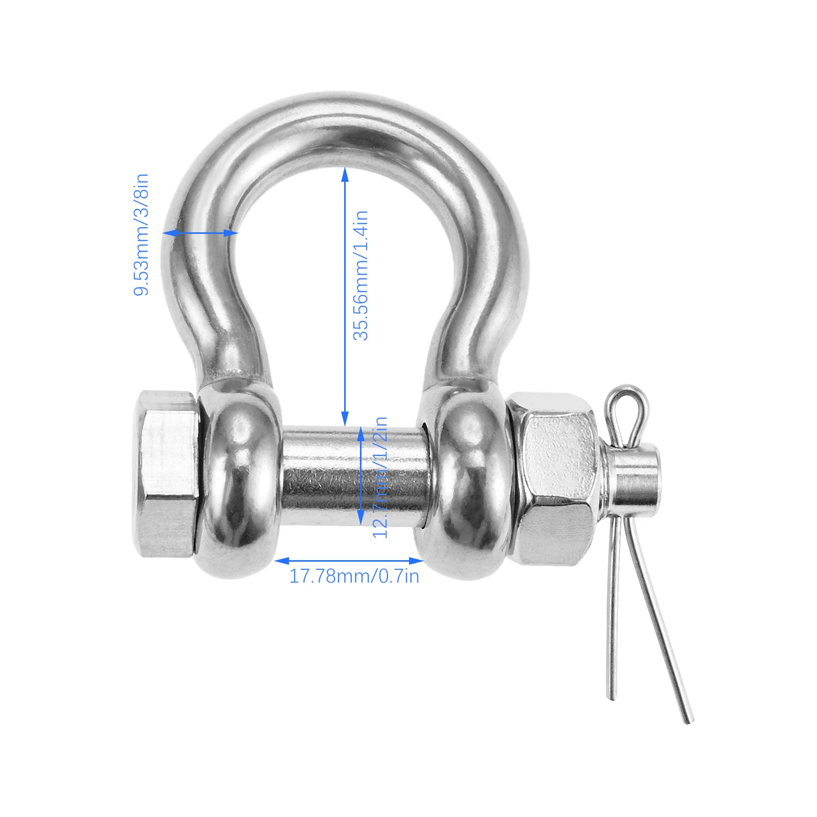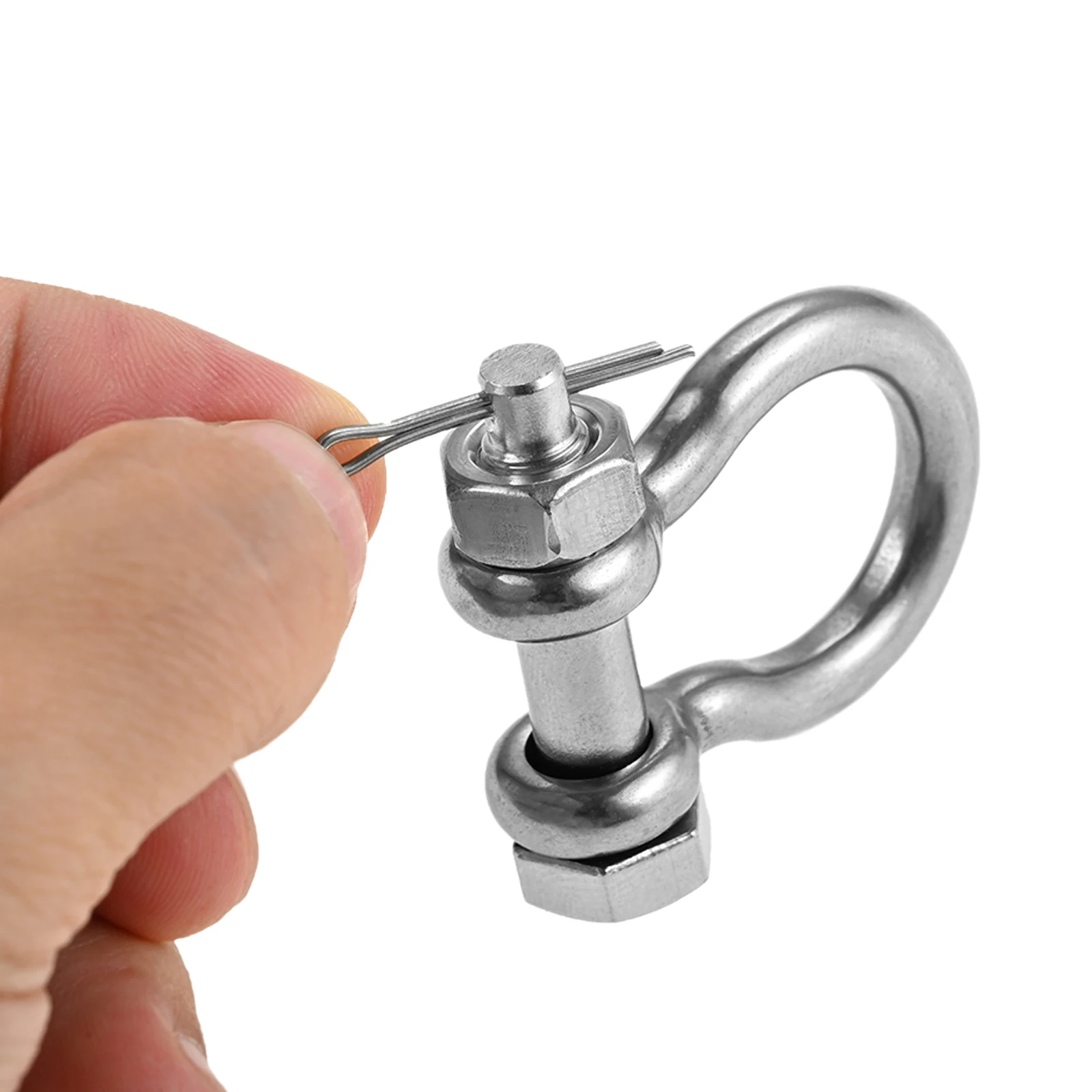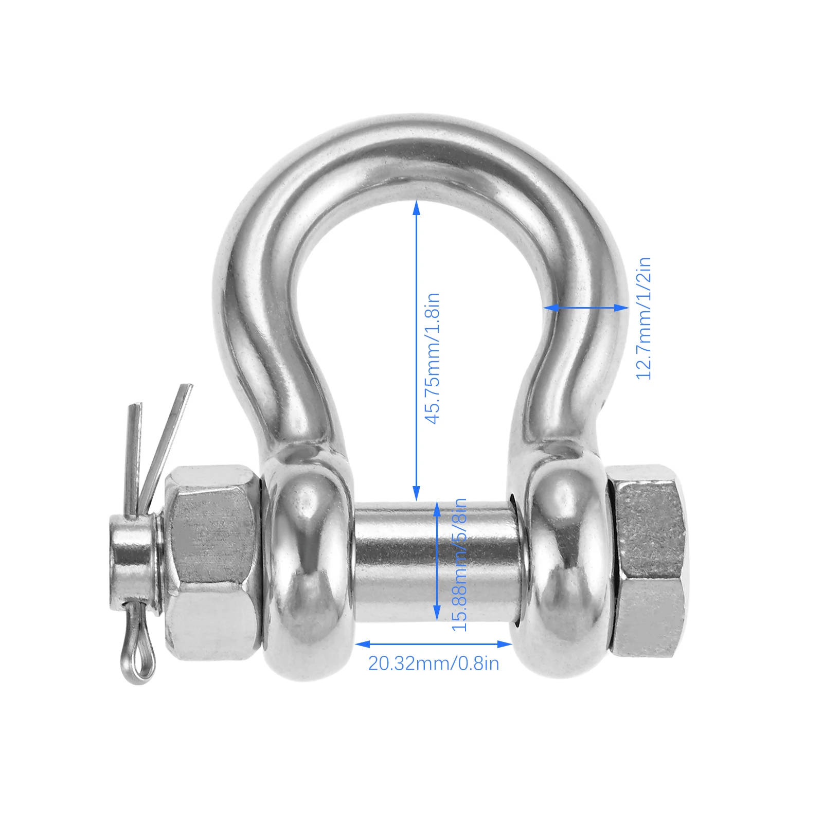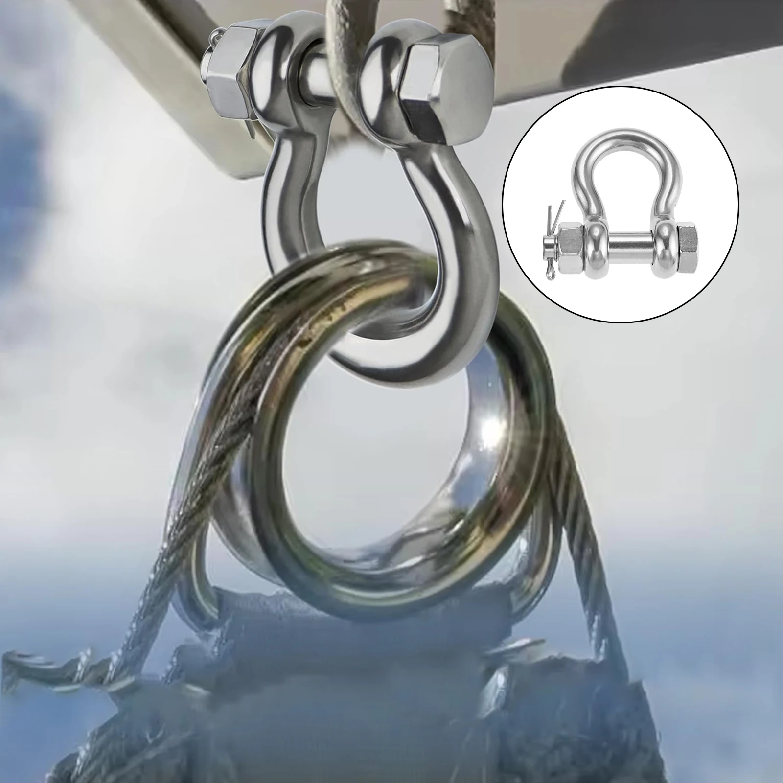 Imagine confidently securing your boat, anchor, or rigging with this robust, high-quality marine bow shackle. Made from corrosion-resistant 316 stainless steel, it offers strength and longevity even in salty, harsh environments. The sleek, silver finish gives it a modern, polished appearance, blending durability with aesthetic appeal. Its large, rounded U-shaped body features smooth, burr-free surfaces that prevent rope or chain damage, ensuring your gear stays intact over time. Equipped with a threaded bolt pin and cotter pin, this shackle guarantees secure fastening while allowing easy installation or removal when needed. Perfect for routine marine tasks or heavy-duty applications, this shackle becomes an essential part of your boating equipment, giving you peace of mind on the water.