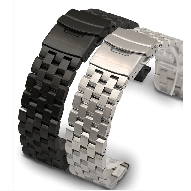 Imagine elevating your dive watch with this high-quality 316L stainless steel strap, expertly crafted for durability and sleek design. Available in classic black with a matte finish or a polished silver, this strap offers a refined look that complements iconic models like SKX007, SKX009, Tuna, 6105, and 6309. With a length of 20cm and widths of 20mm or 22mm, it securely fits your wrist while providing a comfortable, adjustable experience. The straight-end lug design seamlessly attaches to your watch, and the folding deployment buckle ensures safety and ease of use. This strap is perfect for daily wear or enhancing your dive watch’s appearance, blending style with function effortlessly.