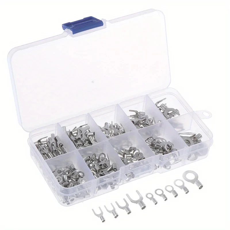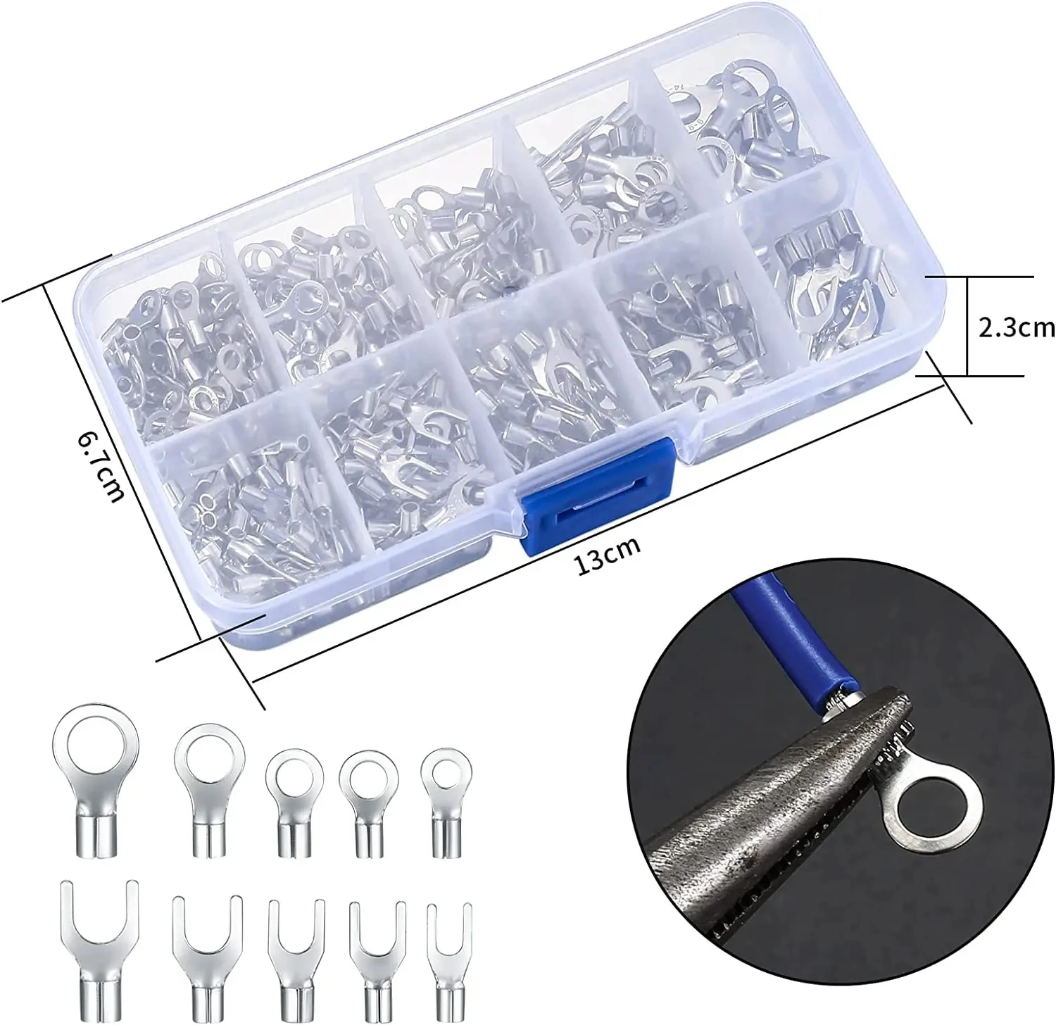 - Contains 320 tin-plated copper crimp terminals, including ring, fork, and U-type connectors for diverse wiring needs, all organized neatly in a transparent storage box for easy access.