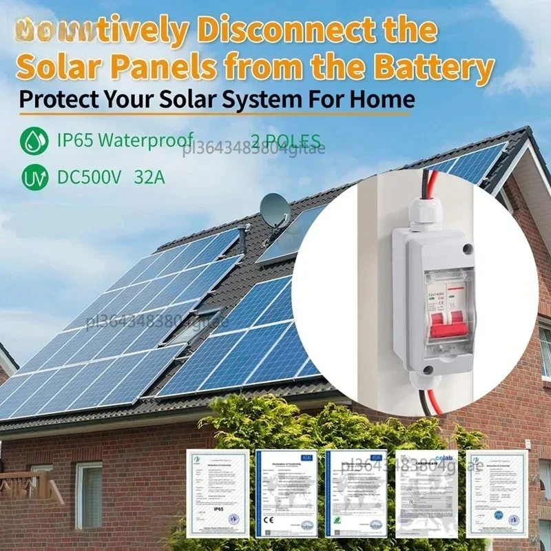 - Rated for 32A current and 500V DC voltage, ensuring safe, reliable disconnection of your solar circuit under working conditions.