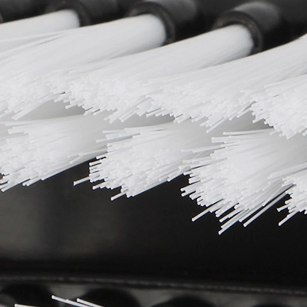 - The rectangular brush head features densely packed stiff bristles that effectively trap and remove dust, dirt, and debris from surfaces.
