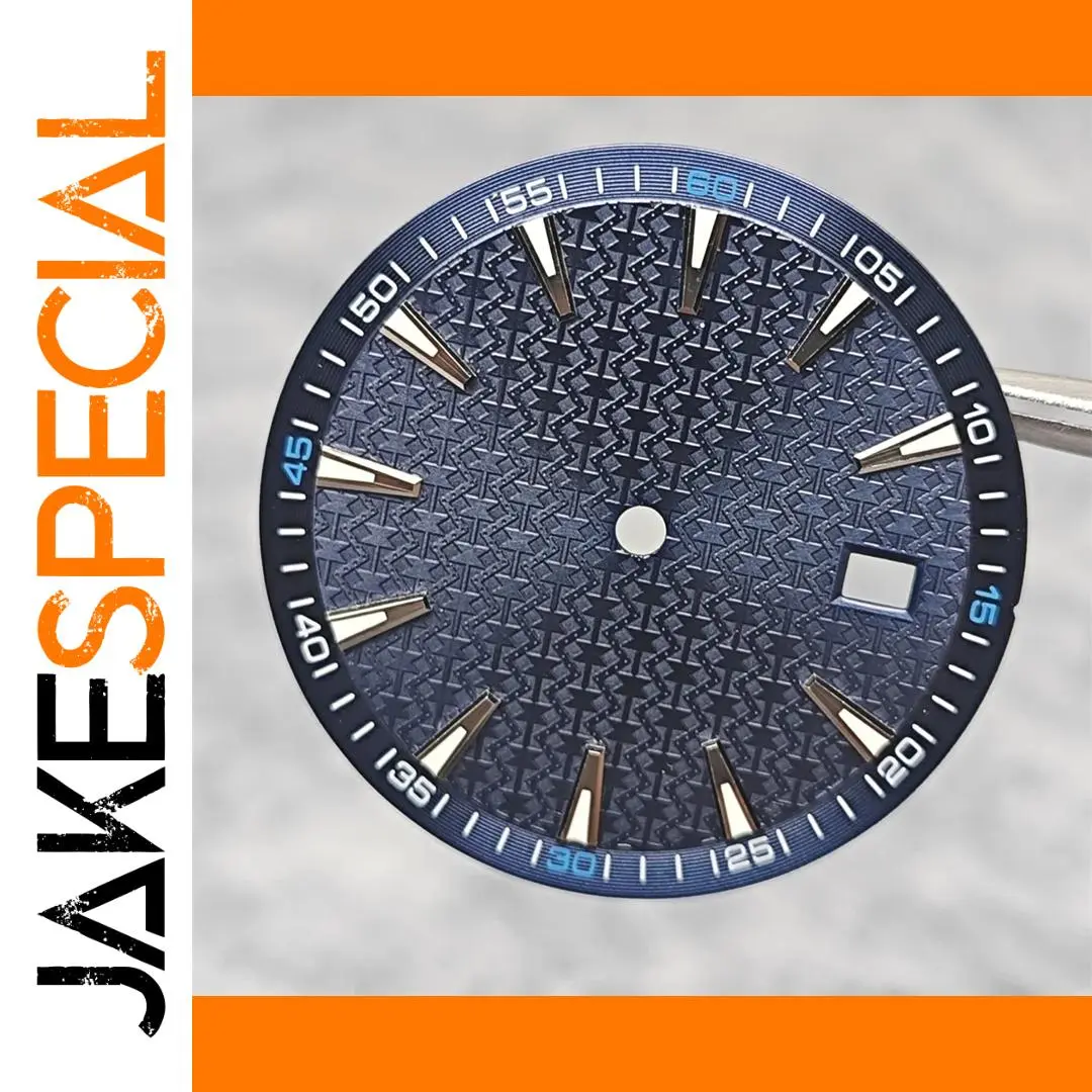 Elevate your watch repair or customization projects with the stunning 33.5mm Deep Blue Watch Dial, compatible with NH35, NH36, 4R, and 7S movements. This intricately designed dial features a textured geometric pattern that captivates the eye, coupled with sleek metallic hour markers that radiate modern sophistication. The prominent markers at the 12, 3, 6, and 9 o’clock positions ensure clarity, while the stylish blue minute marker at the 6 o’clock adds a unique touch. Transform your timepiece into a statement of elegance and craftsmanship with this exquisite replacement dial, designed for discerning collectors and enthusiasts.