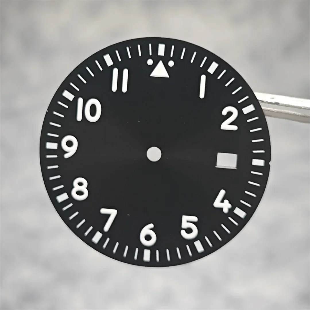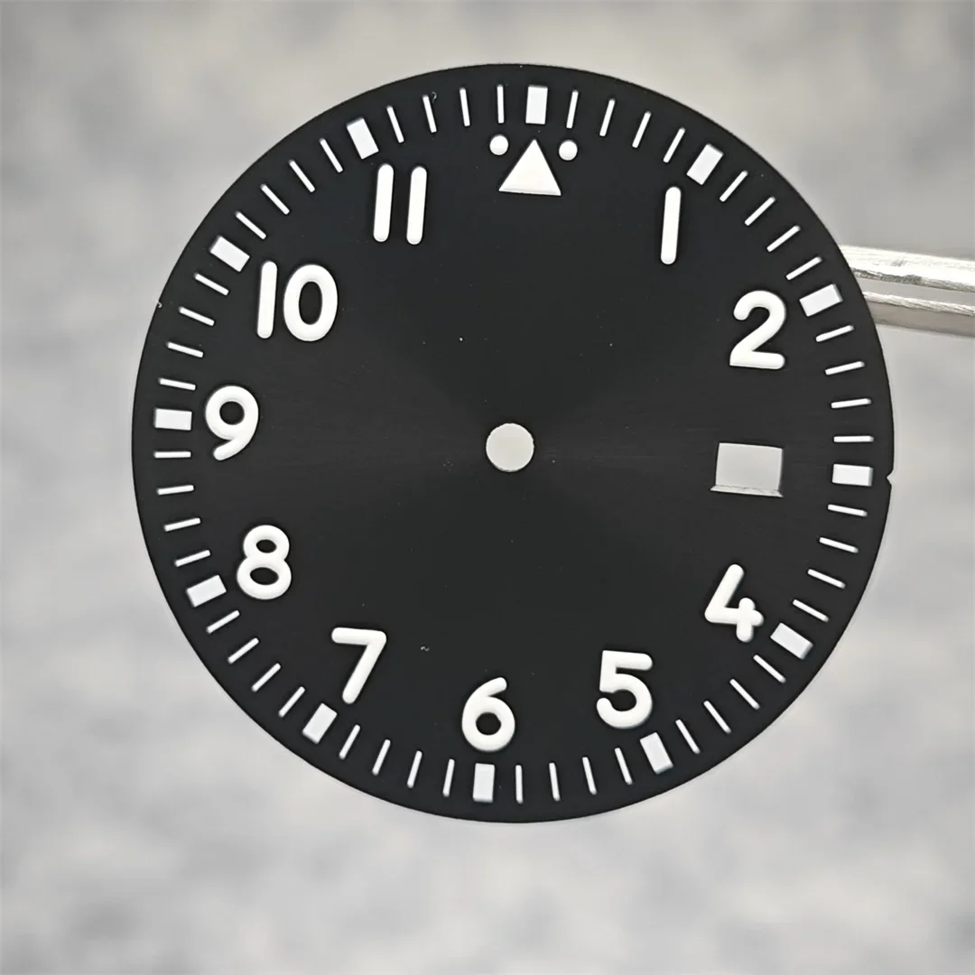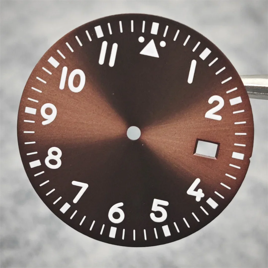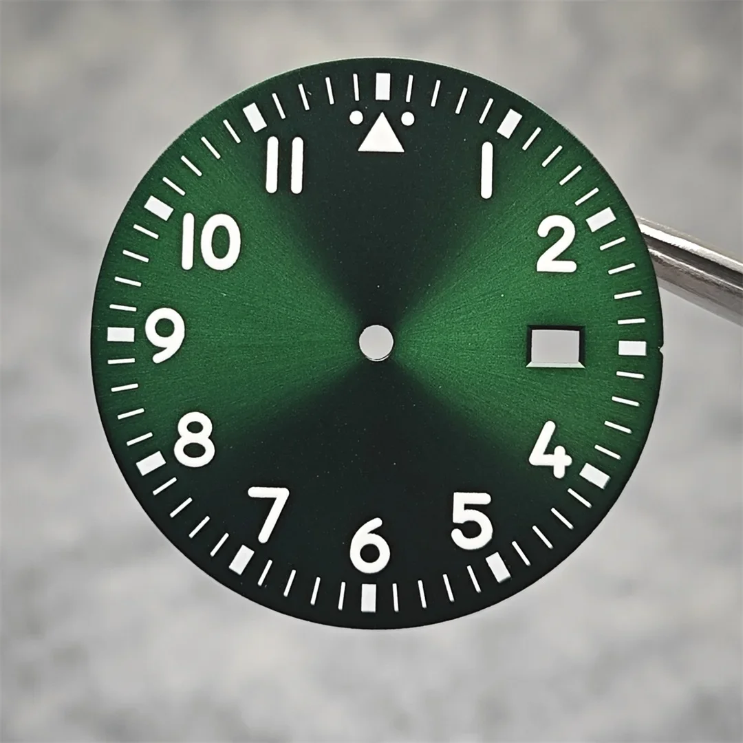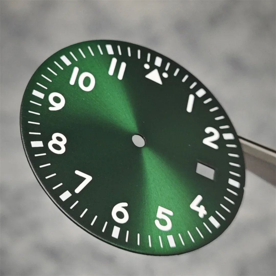 Imagine elevating your watch with this stunning 33.8mm sun pattern dial, designed to catch the eye and enhance your style. The vibrant green background features a radiant sunburst pattern that creates a captivating gradient effect, beautifully accented by luminous green details that ensure visibility in low light. Its sleek design incorporates a single date window at 3 o'clock, Arabic numeral markers for a bold look, and luminous accents that glow softly in the dark. Crafted with high-quality materials, this dial is compatible with NH35, NH36, or 4R movements, making it a versatile upgrade for your mechanical watch. Whether you’re customizing a new piece or restoring an existing one, this dial promises durability, style, and precision.