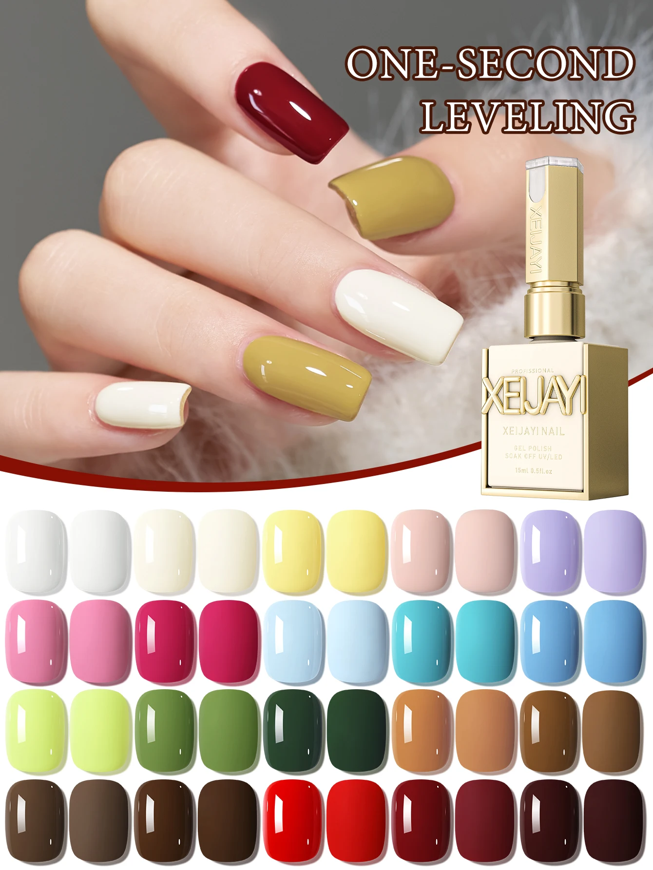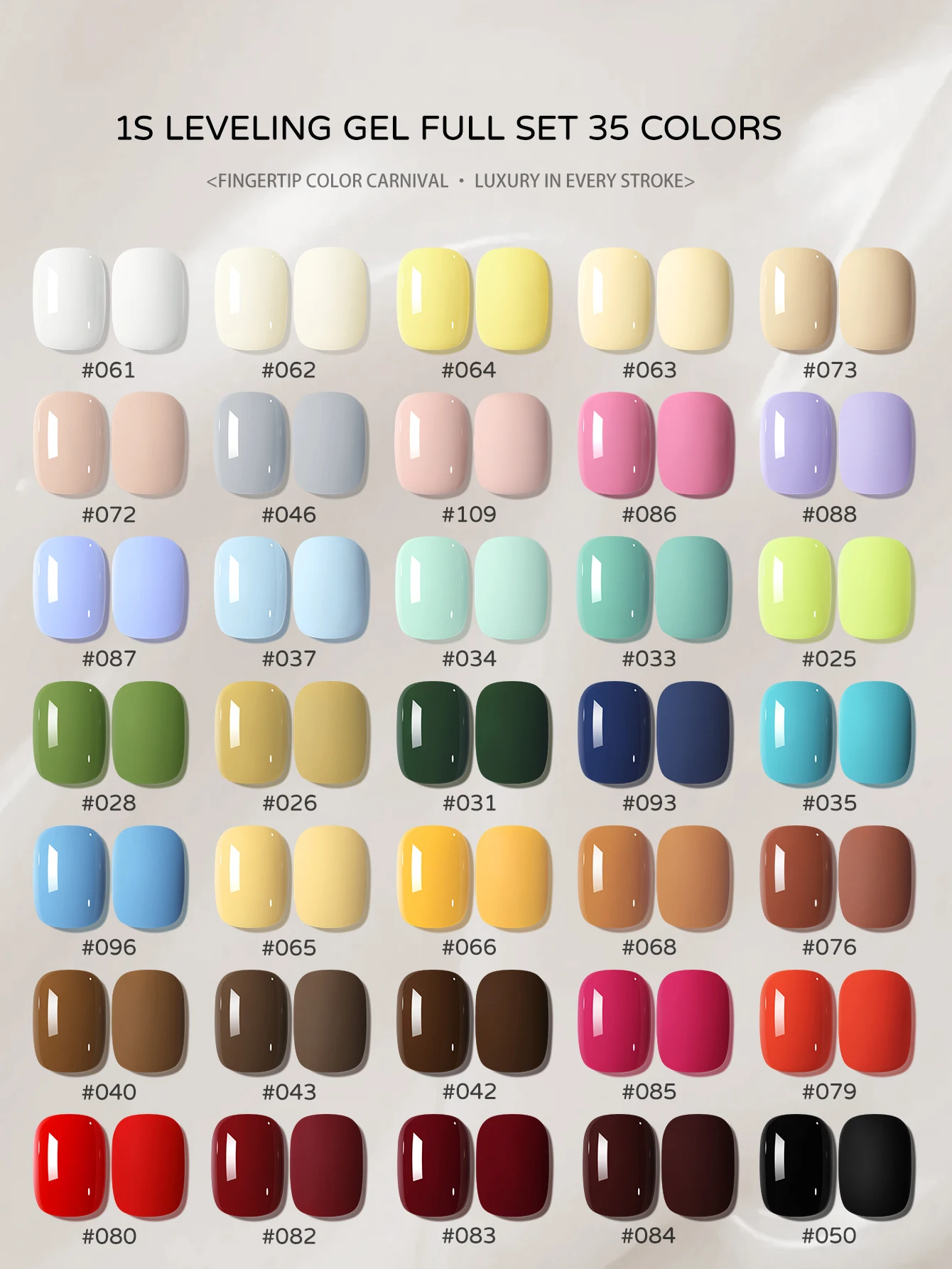 Experience vibrant, long-lasting nail beauty with this 35-color gel nail polish set, each bottle containing 15ml of semi-permanent, soak-off UV and LED-curable gel. Formulated without high-concern chemicals, it features a blend of acrylates/carbamate copolymer, acrylates/VP copolymer, and dimethicone for durability and a glossy finish. The set includes 35 precisely labeled shades with unique color codes, ranging from soft pastels to bold, vibrant hues, perfect for customizing your nail designs. Designed for professional use and lasting wear, this high-quality gel polish set allows you to create stunning, salon-quality manicures effortlessly at home or in a salon setting.