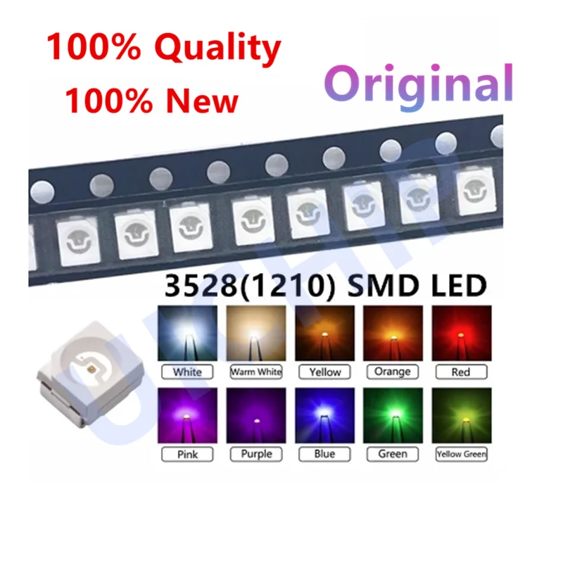 Experience vibrant illumination with this sleek, flexible strip of 3528 SMD surface-mount LEDs. Designed for durability and precision, each tiny LED chip emits a bright glow of 7-8 lumens at just 3 volts with a 20mA forward current. With evenly spaced LEDs along a narrow, black circuit board, this strip offers seamless, energy-efficient lighting ideal for a variety of applications—from accent lighting to decorative arrangements. The vivid color options include red, purple, white, yellow, orange, warm white, blue, and green. Imagine transforming your space easily with a customizable, lightweight, and flexible light source that stays bright and consistent over time. Elevate your surroundings effortlessly with this high-quality LED strip.