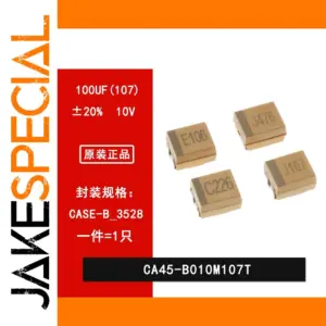 Experience reliable performance with this set of five 3528 SMD tantalum capacitors. Designed for precision and longevity, these small rectangular components feature a matte, light tan surface with clearly printed alphanumeric codes for easy identification. Their compact size makes them perfect for tight electronic spaces, providing stable capacitance essential for various circuit applications. Each capacitor has a rated voltage of 10V and a capacitance of 100µF (with the code 107). Crafted for durability and consistent performance, they are ideal replacements or additions to existing electronic designs. Whether you’re repairing, customizing, or building new circuits, these capacitors promise to meet your technical needs safely and efficiently, all in a tidy, organized set facilitating ease of use and installation.