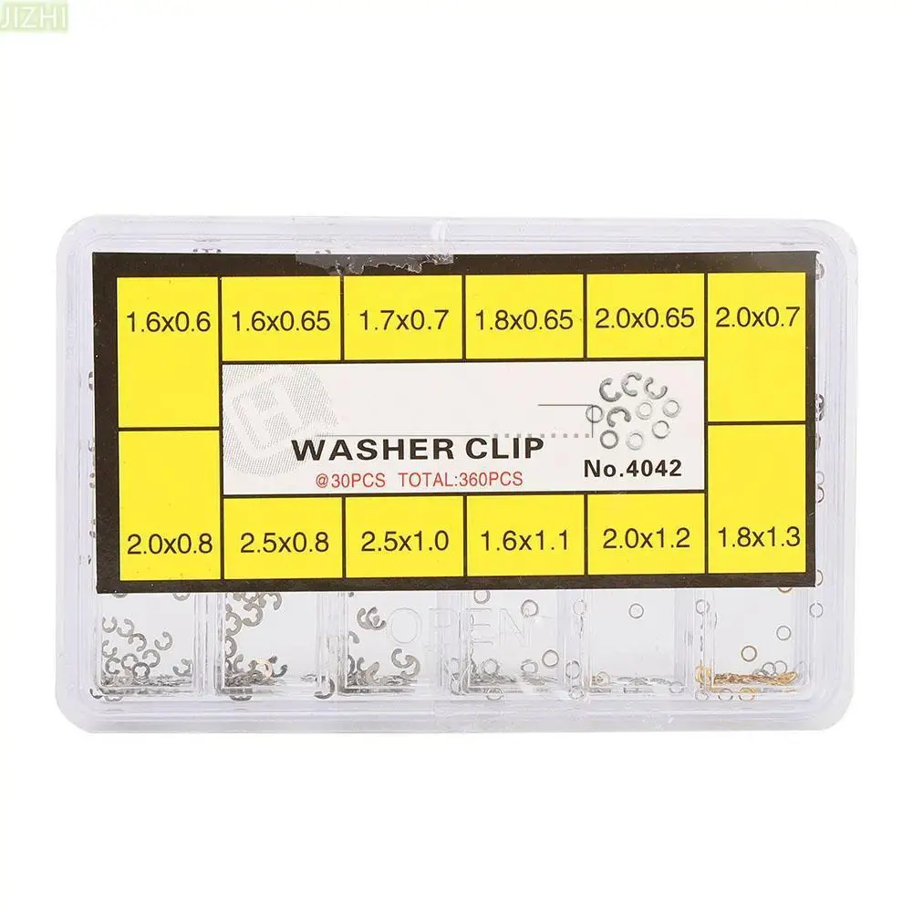 This extensive set of 360 watch washer clips is an essential companion for any watchmaker or enthusiast. Feel the confidence as you effortlessly organize your repairs with these high-quality, rust-resistant metal clips. Each clip features a metallic finish, ensuring long-lasting durability. You’ll find a range of sizes, accommodating various watch movements, with outer diameters from 1.6mm to 2.5mm. The clips are conveniently housed in a transparent plastic box, allowing you easy access and organization for future repairs. Experience seamless watch repair work with this carefully curated assortment tailored to meet your needs.