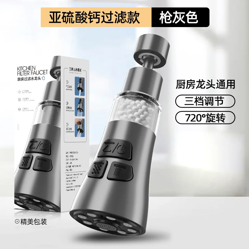 Experience the convenience and style of this modern kitchen faucet extender, designed to enhance your daily routine. Crafted with a sleek, polished metallic finish, it boasts a reflective silver or grey color that complements any modern kitchen or bathroom decor. Its cylindrical body tapers elegantly towards the universal 22mm interface, ensuring a seamless fit on most standard faucets. The extender facilitates a 360-degree rotation, allowing you to direct water flow precisely where needed, minimizing splash and water wastage. Equipped with a multi-functional spray head featuring textured grooves for grip, this extender offers various spray modes, including shower, bubble, and spray, suitable for both washing dishes and filling containers. This compact, lightweight design improves water flow control while maintaining a clean, sophisticated aesthetic.