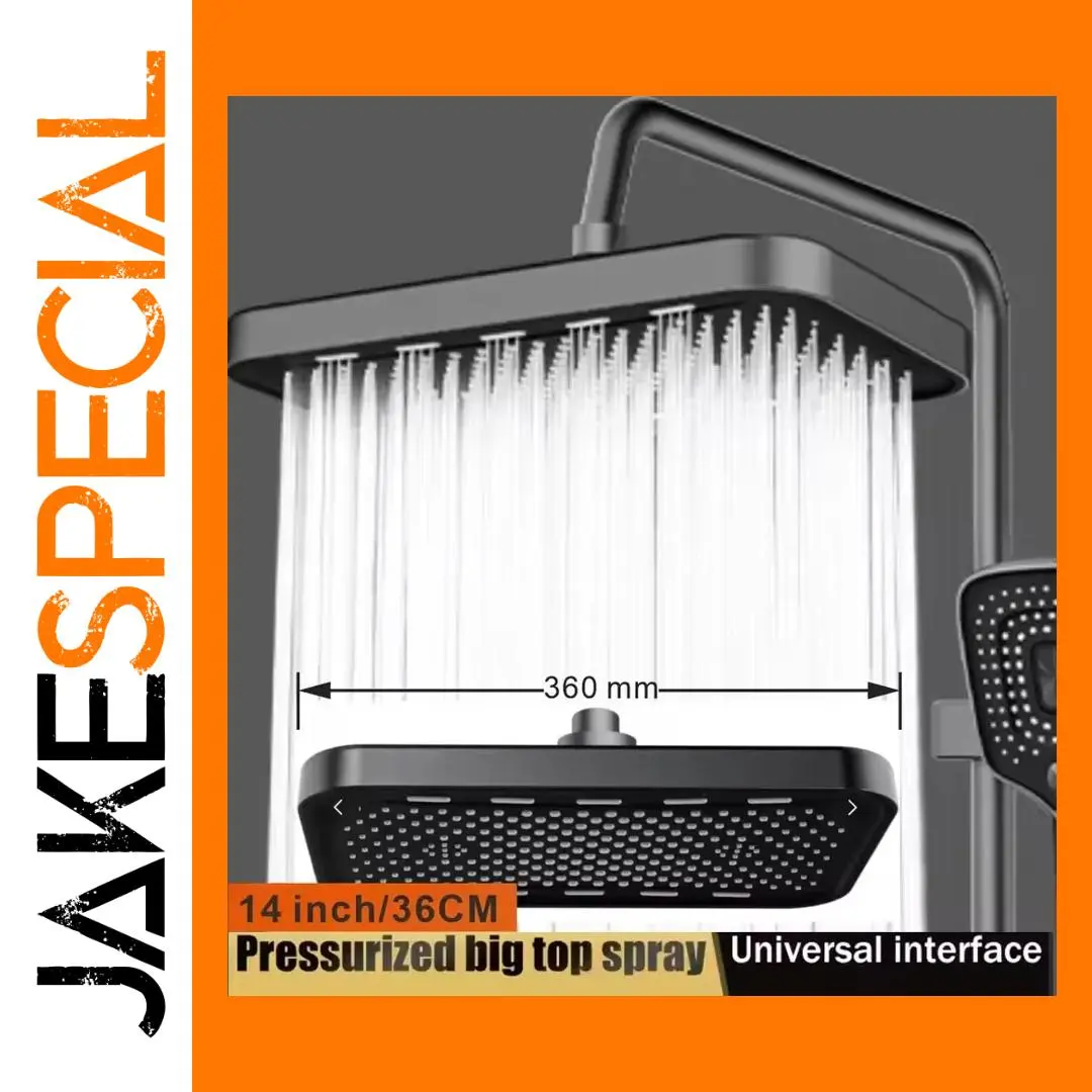 Transform your bathroom into a spa-like retreat with this large, 360-millimeter rainfall shower head, expertly designed for ceiling mounting. Constructed from durable ABS plastic, it features a sleek black finish that complements modern interiors perfectly. The expansive rectangular face with a grid of evenly spaced nozzles ensures extensive coverage, delivering a luxurious, high-pressure rainfall effect. Its rotatable head allows for 360-degree adjustment, providing optimal water flow and positioning. The shower head is fixed with a handle for easy installation and use, and it supports water-saving technology to help conserve resources without sacrificing performance. Experience a soothing, wide-flow shower that elevates your daily routine.