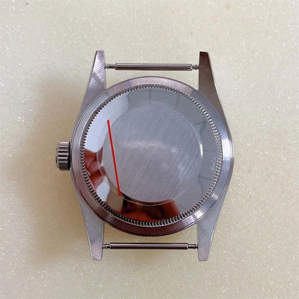 The 36MM Oyster Acrylic Glass Stainless Steel Watch Case is expertly designed for NH35/NH36/4R movement, with a durable stainless steel construction that features a shiny silver finish. This robust case has a diameter of 36MM, a dense bottom thickness of 12.9mm, and a transparent bottom thickness of 13.3mm, accommodating an assembled face diameter ranging from 28.5MM to 29MM. It is enhanced by a clear acrylic mirror and has a grooved, serrated bezel for easy adjustments. Compatible with a 20MM strap and boasting a waterproof rating of 3ATM, this watch case weighs approximately 40g, combining style and functionality seamlessly.