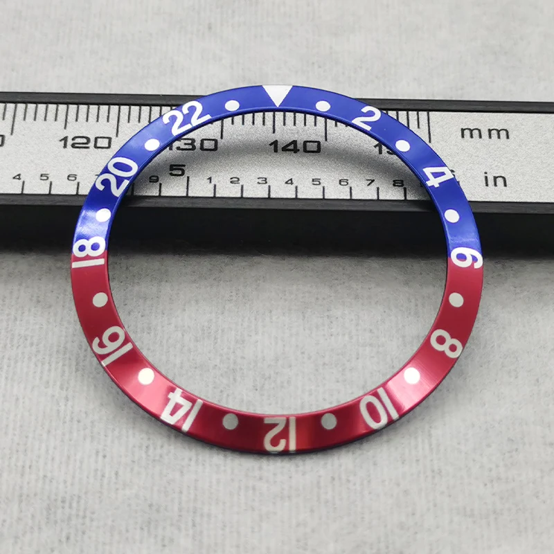 - Technical specifications include a 37.5mm outside diameter, 30.8mm inside diameter, aluminum construction, and compatibility with stainless steel watch cases for a professional finish.