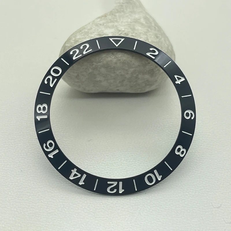 - Includes clear, evenly printed white numerals from 1 to 24, and an inverted triangle at 12 o'clock, providing high contrast for easy readability during timing or GMT functions.
