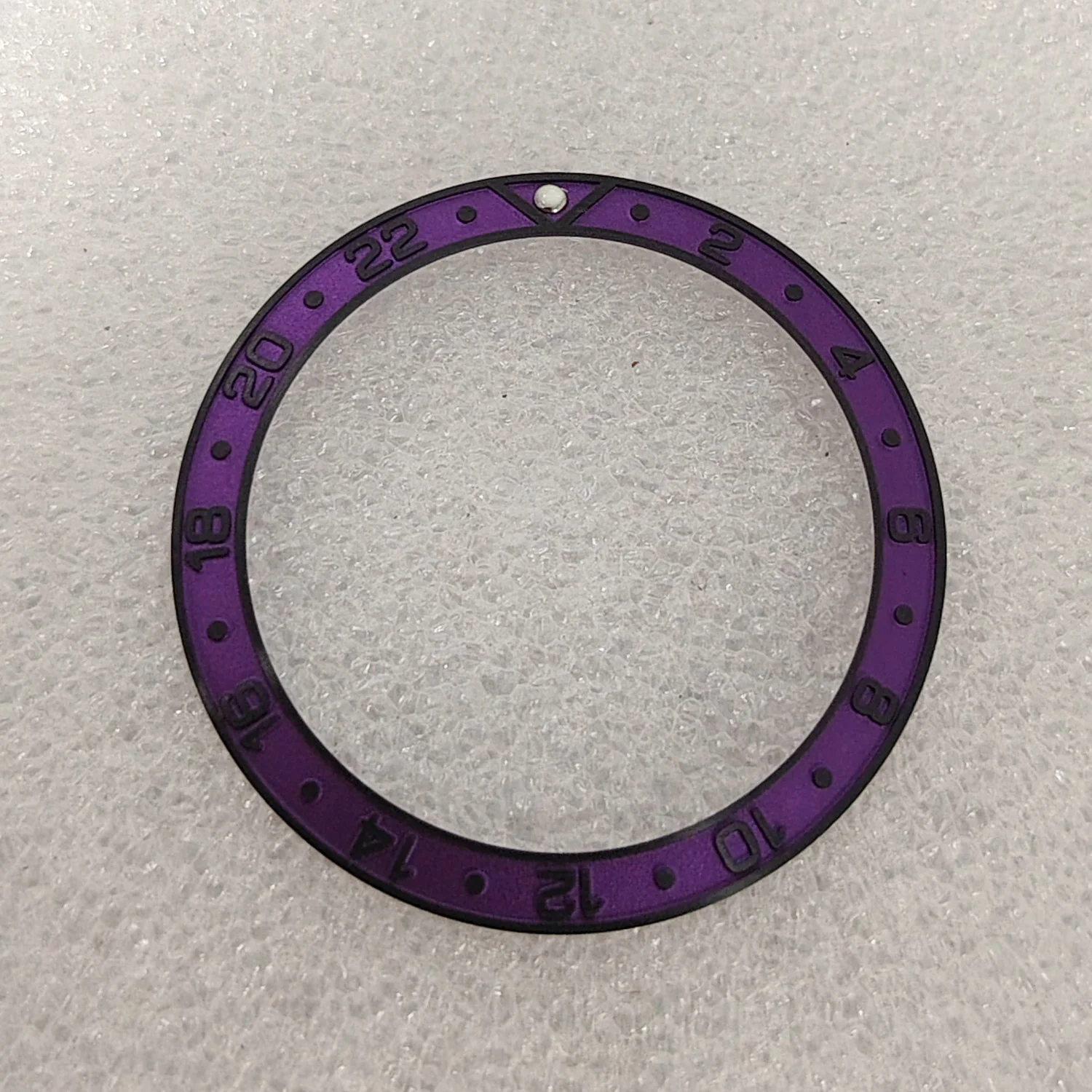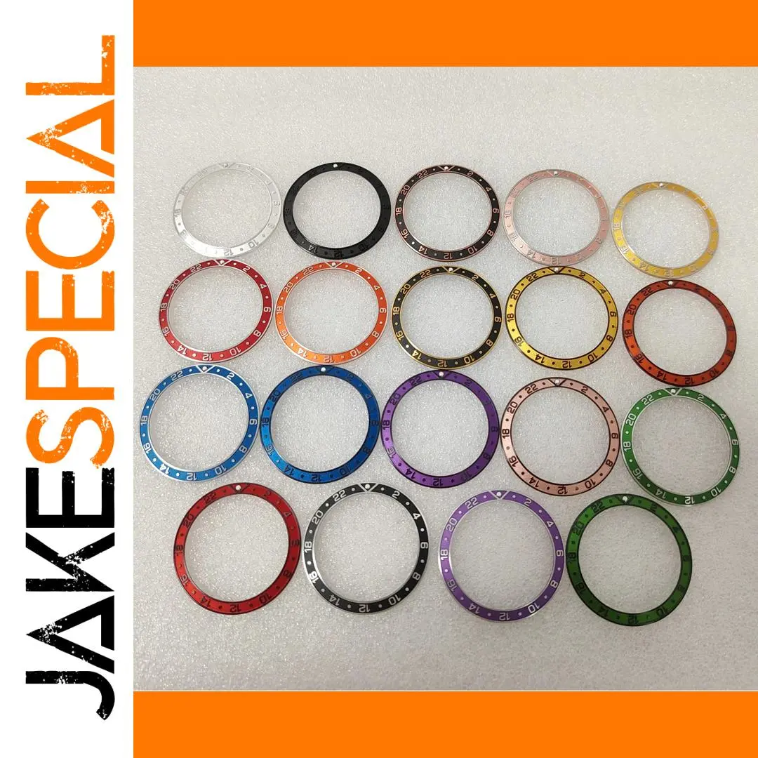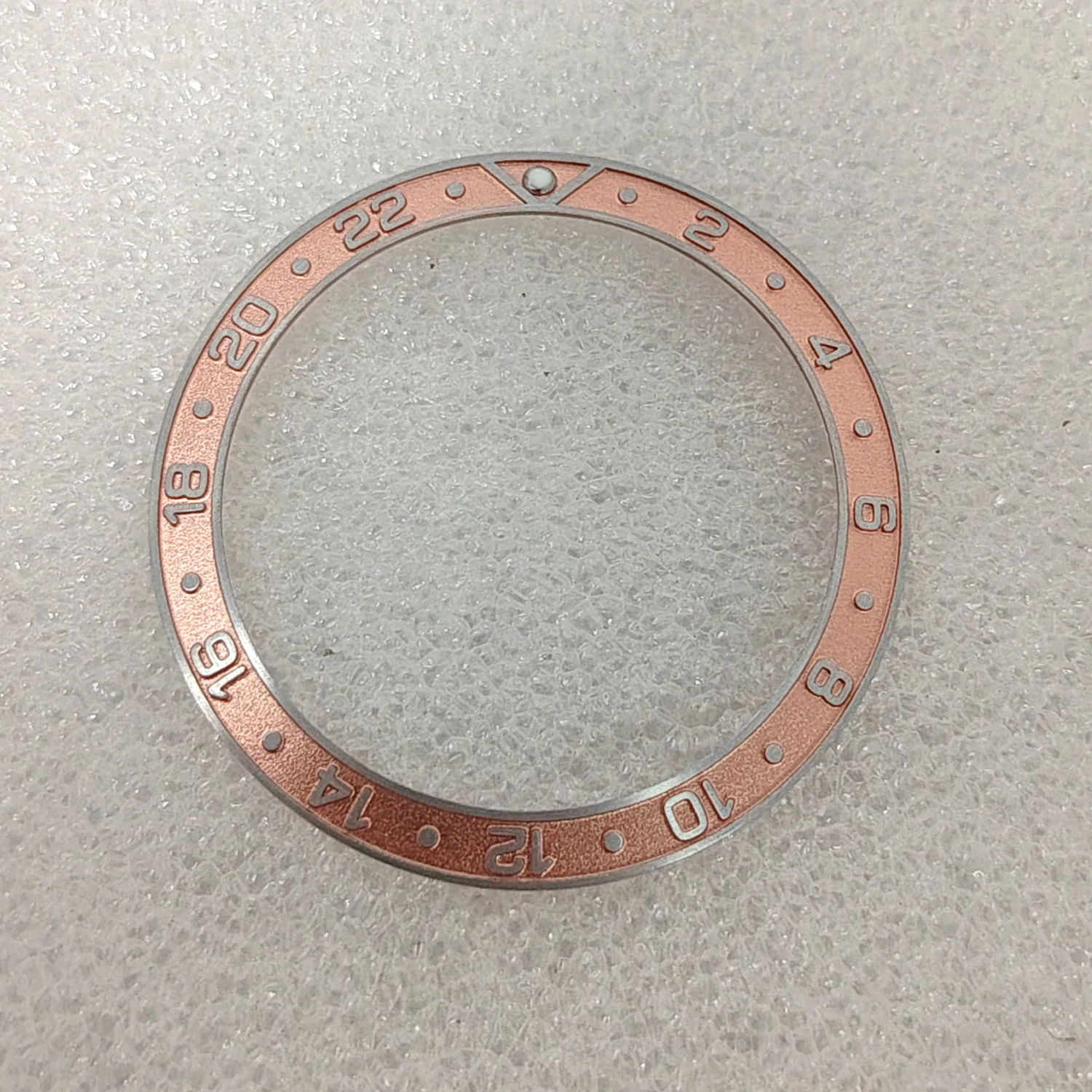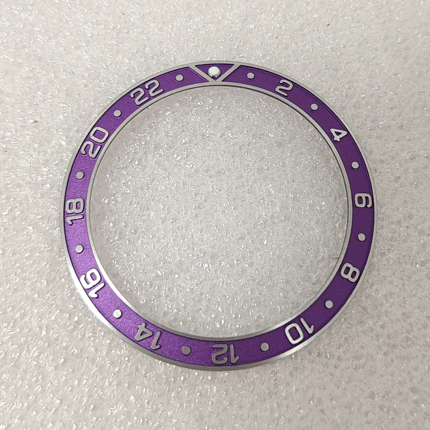 Elevate your GMT watch with this 38mm aluminum bezel, crafted from lightweight, durable material. It features a sleek beveled edge, engraved numerals, and markings for easy reading. Available in matte, polished, and reflective finishes, it comes in vibrant colors like black, black gold, black rose, silvery, blue black, green black, orange black, purple black, red black, yellow black, and their gradient variants. Designed for 40mm case watches with a precise 30.7mm inner diameter and approximately 1.55mm thickness, this bezel is perfect for replacement, repair, or personalized enhancement, adding style and sophistication to your timepiece.