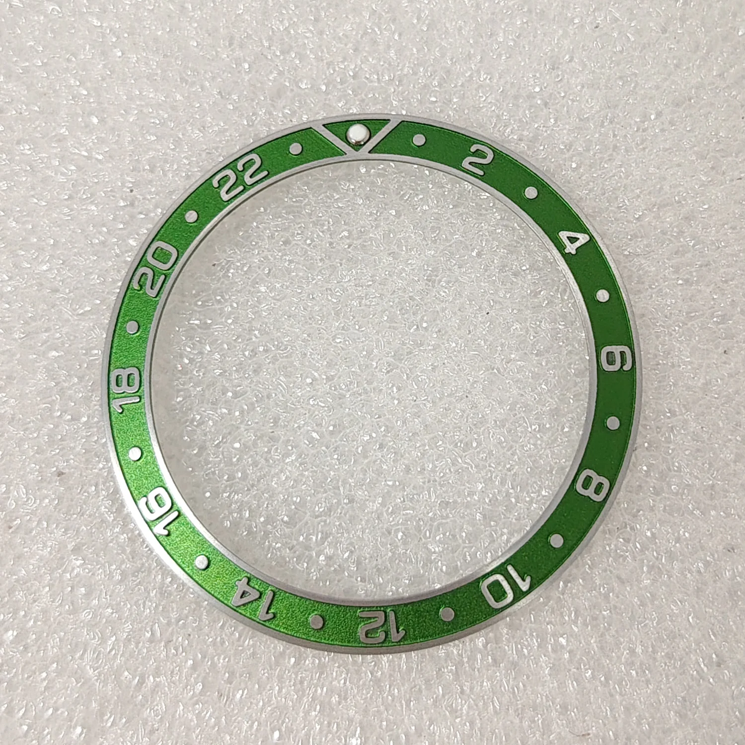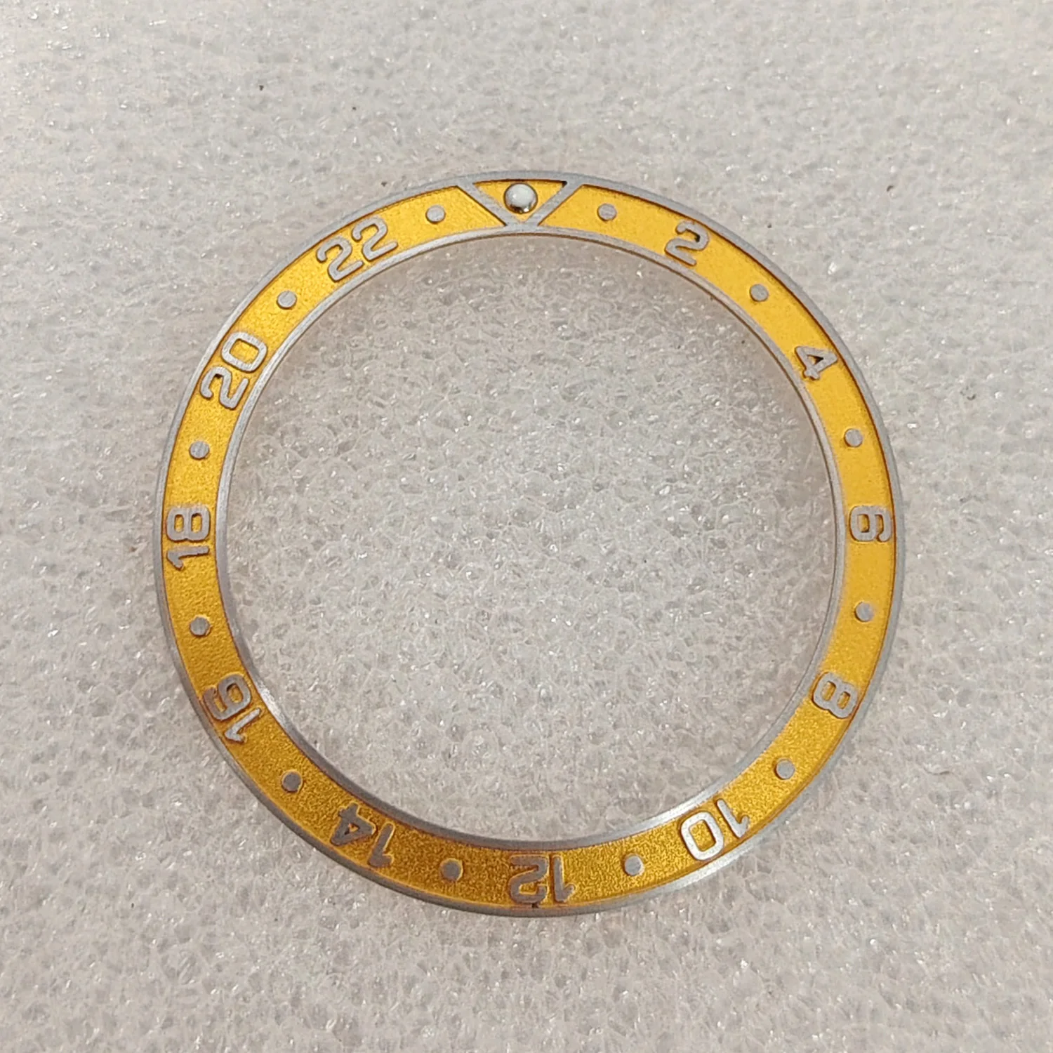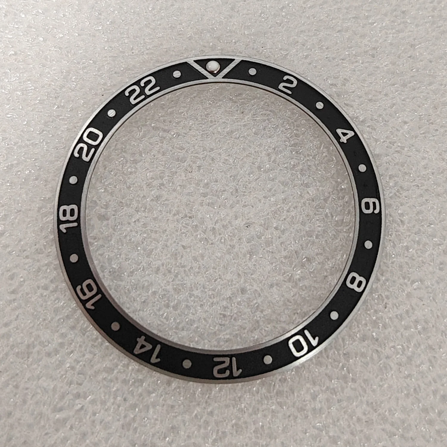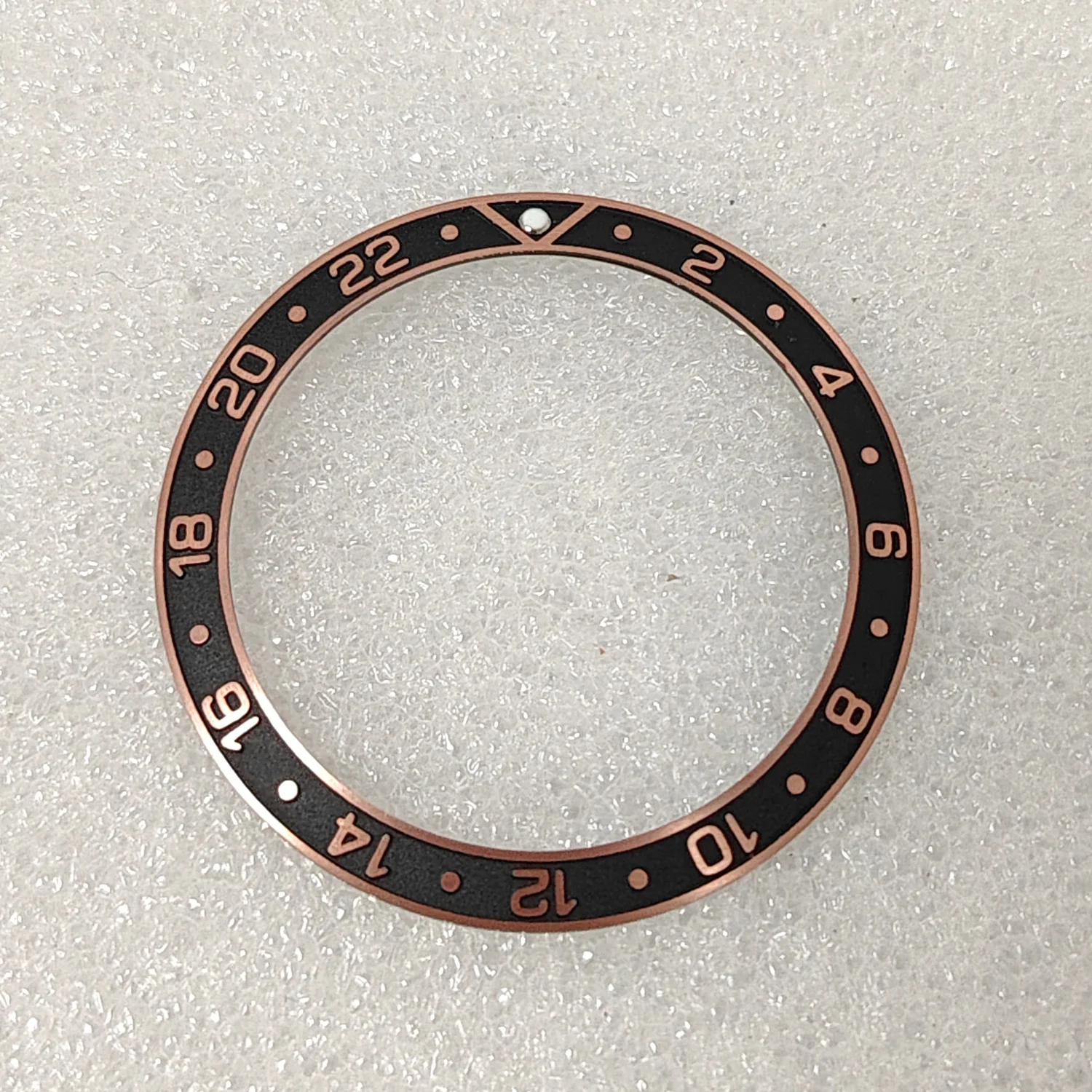 Elevate your GMT watch with this 38mm aluminum bezel, crafted from lightweight, durable material. It features a sleek beveled edge, engraved numerals, and markings for easy reading. Available in matte, polished, and reflective finishes, it comes in vibrant colors like black, black gold, black rose, silvery, blue black, green black, orange black, purple black, red black, yellow black, and their gradient variants. Designed for 40mm case watches with a precise 30.7mm inner diameter and approximately 1.55mm thickness, this bezel is perfect for replacement, repair, or personalized enhancement, adding style and sophistication to your timepiece.