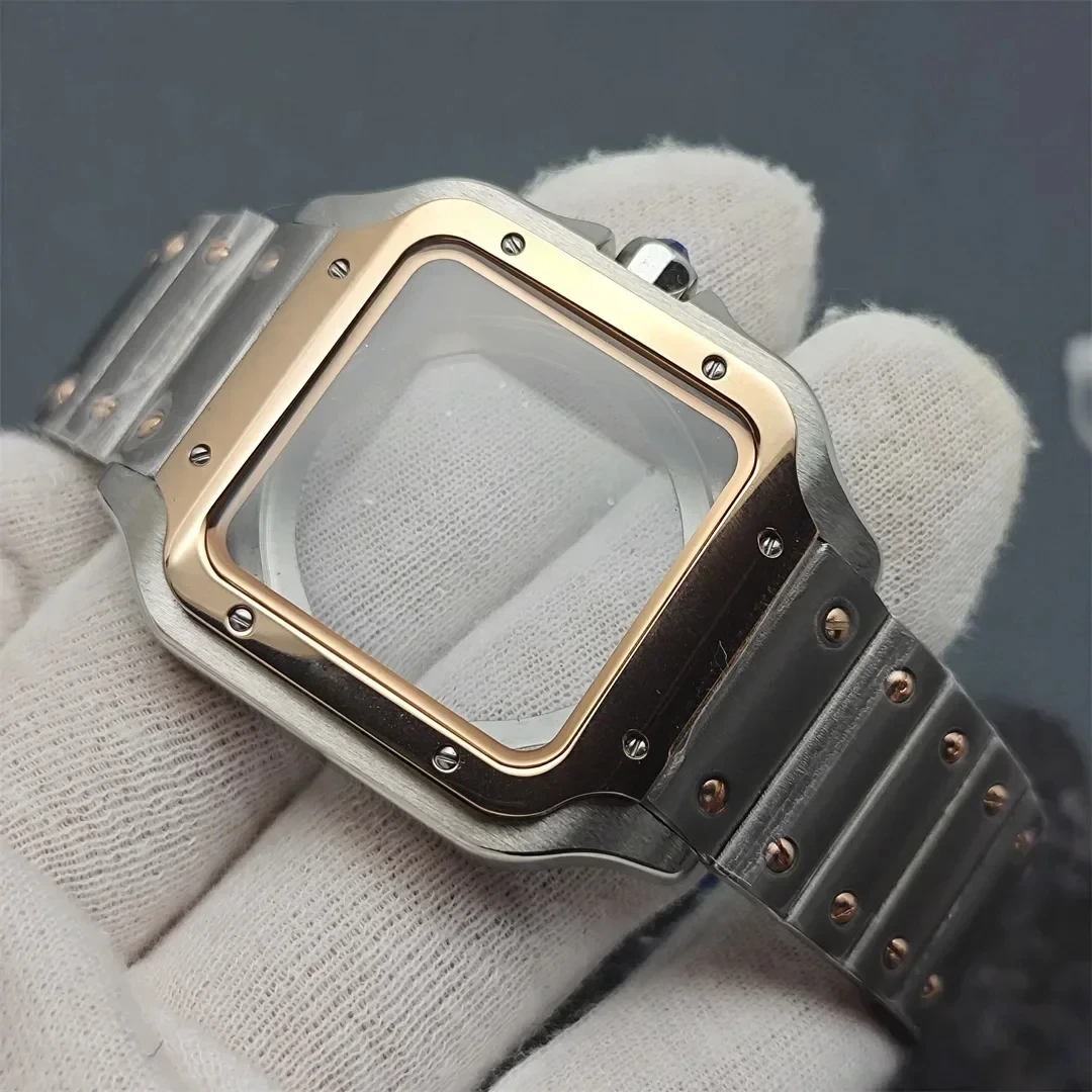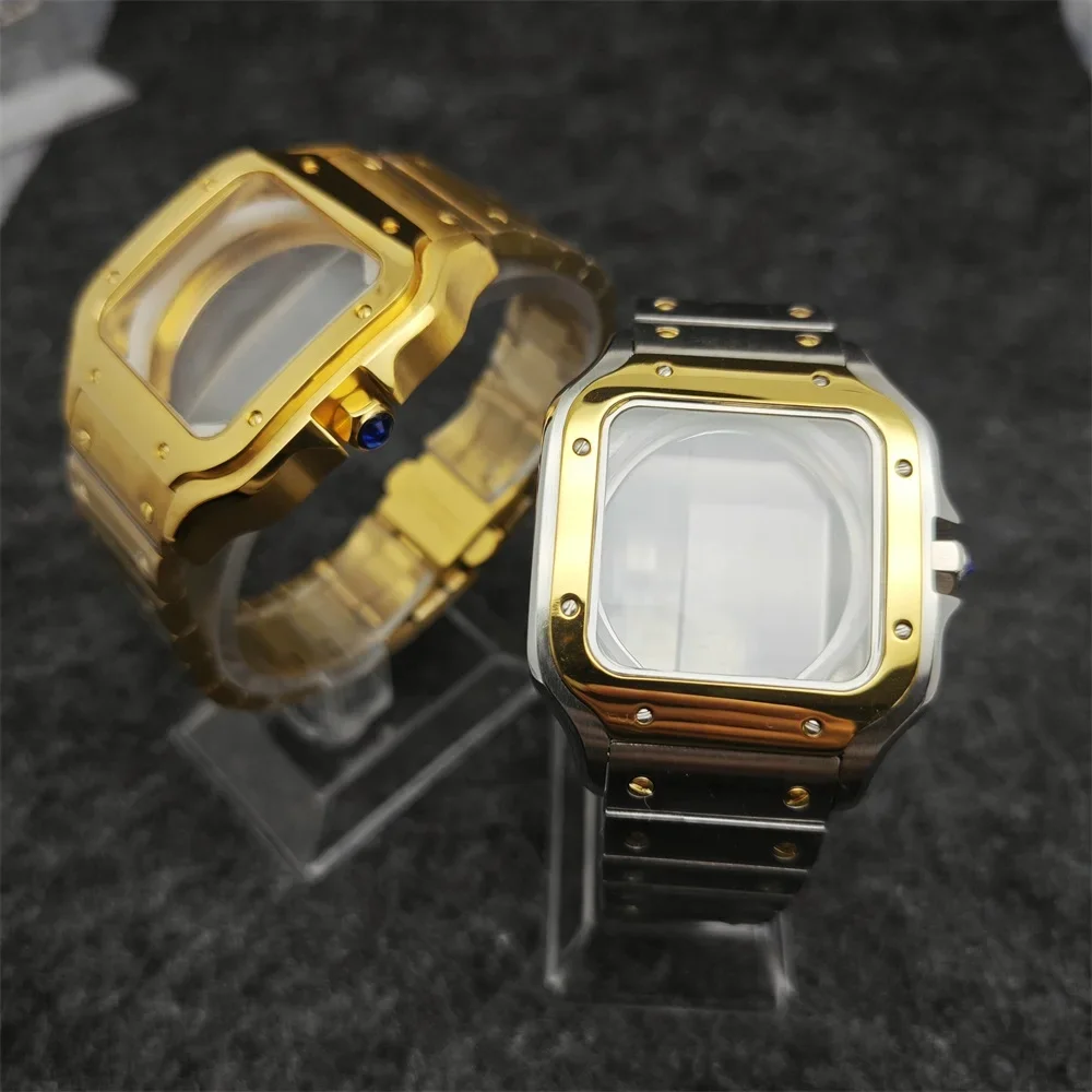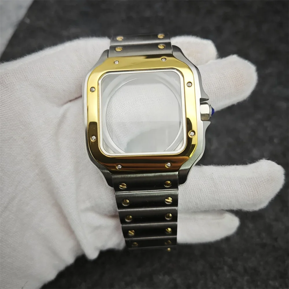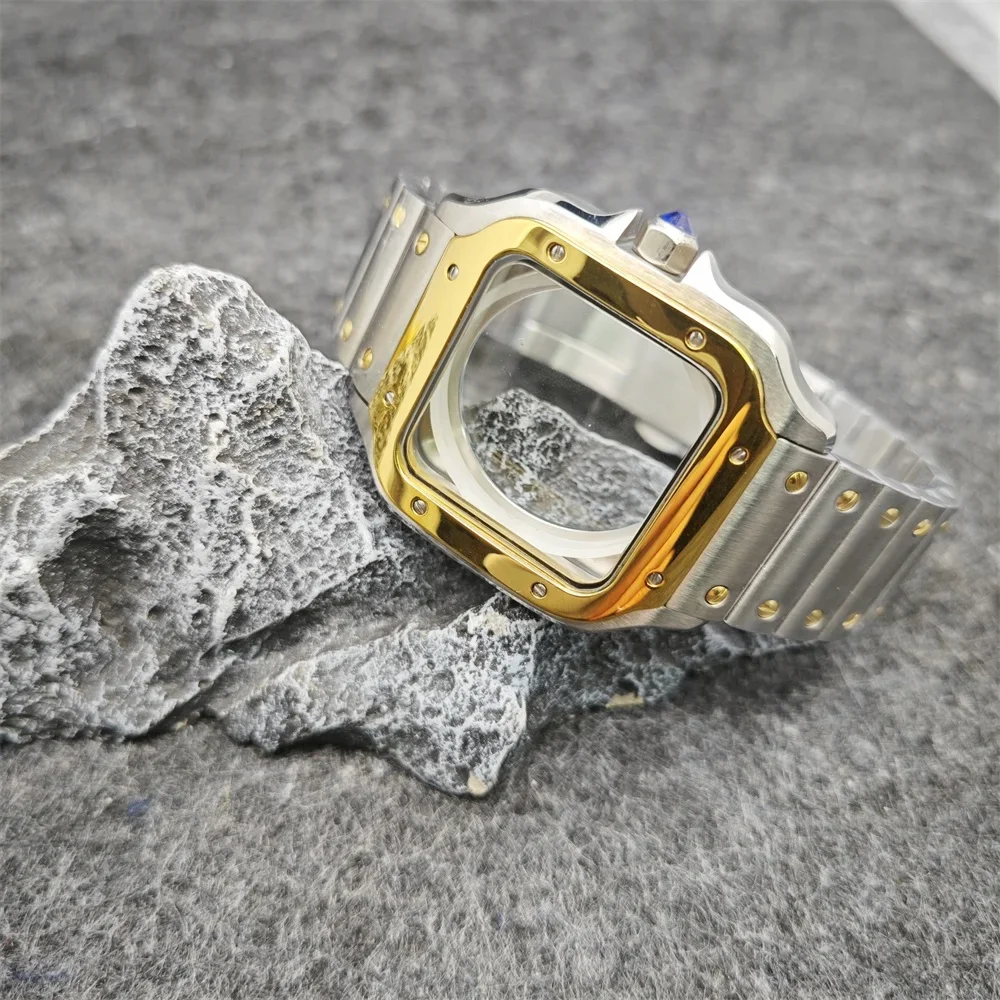 This exquisite 38mm Gold/Silver Square Watch Case Set is a must-have for any watch enthusiast. Skillfully crafted from high-quality 316L stainless steel, it epitomizes durability and elegance. Imagine yourself enhancing your collection with this striking watch case, designed to elevate your style on any occasion. The striking square design and stunning bracelet not only complement your watch beautifully but also provide a polished and sophisticated appearance that turns heads. Picture wearing this accessory at your next event, receiving compliments and admiration for your exquisite taste.