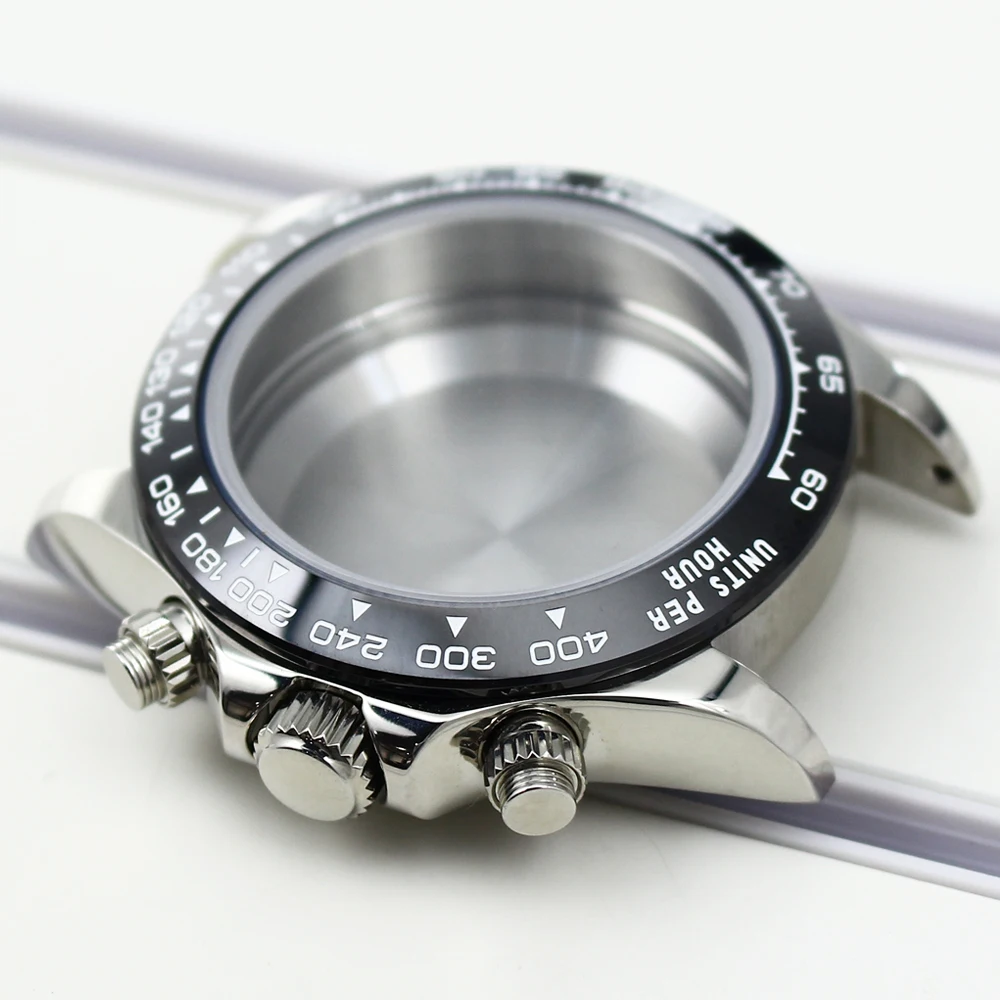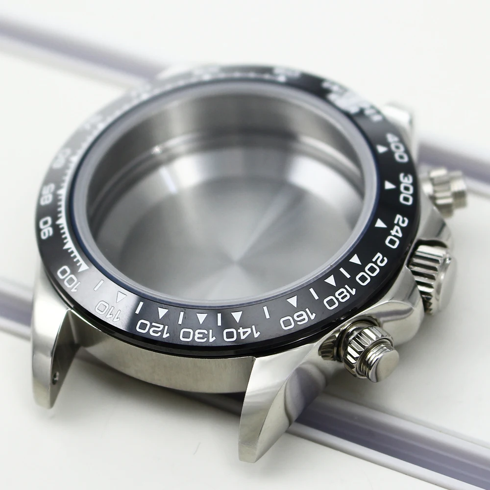 Experience the perfect blend of durability and style with this sleek 39mm VK63 watch case. Crafted from solid 316L stainless steel, it boasts a polished, reflective finish that catches the light beautifully. The case features a durable sapphire crystal glass, offering excellent scratch resistance and waterproof protection up to 10 ATM (100 meters). Its refined design includes smoothly curved lugs for comfortable wear and a black bezel with white markings, adding a bold, sporty accent. This versatile case is suitable for a 29mm to 30.2mm dial and supports a strap width of 20mm, making it ideal for customizing your timepiece with your favorite strap options. Perfect for a modern, professional look or casual style, this case enhances any watch build with sophistication.