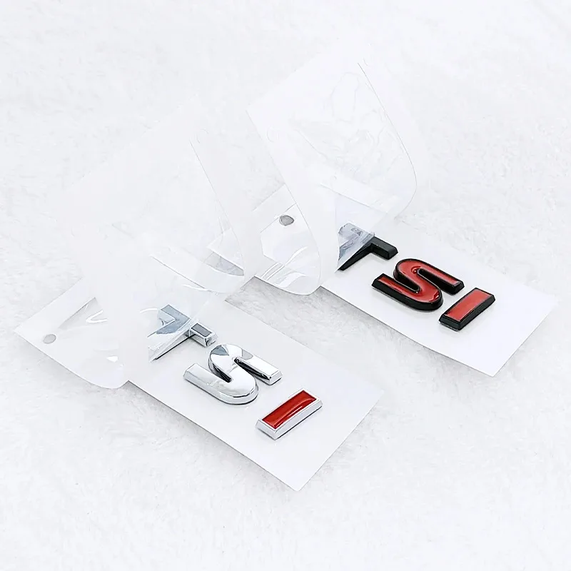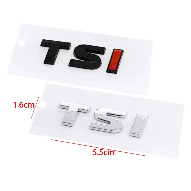 Transform your car's trunk with this stunning 3D ABS Chrome Black TSI Emblem Badge, meticulously crafted for automotive enthusiasts. Made from high-quality ABS material, this emblem not only adds a touch of sophistication but also durability to your vehicle's exterior. Measuring 55mm in length and 16mm in width, the emblem features a sleek chrome finish on the top, while the bottom exudes elegance with a matte black finish and a striking red accent on the letter “I”. Already picturing how it will look on your car? Imagine showcasing your unique style with this stylish vehicle badge!