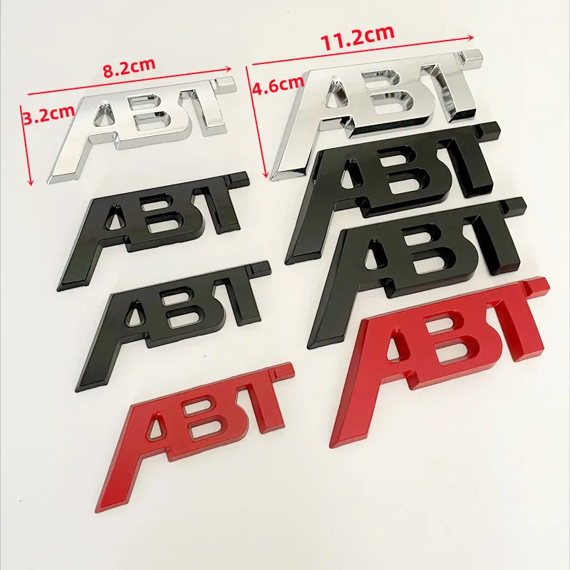 Enhance the appearance of your vehicle with this high-quality 3D metal ABT logo emblem badge. Measuring approximately 11.2 cm by 4.6 cm in the larger size and 8.2 cm by 3.2 cm in the smaller, this emblem offers a bold, angular design with a polished finish. Crafted from durable alloy metal, it features a thick, beveled edge that adds depth and solidity, creating a striking visual impact. The badge’s reflective surfaces—available in chrome, glossy black, matte black, and vibrant red—highlight its premium craftsmanship. Easy to install with an adhesive backing, it seamlessly adheres to your vehicle’s trunk or body, instantly elevating its sporty aesthetic. Whether you want to showcase your passion or upgrade your vehicle’s style, this emblem is a perfect choice.