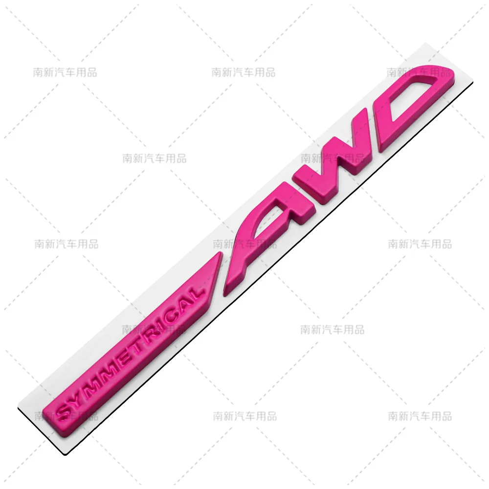 Imagine upgrading your Subaru with this striking 3D metal decal, adding a bold, metallic touch to your vehicle's appearance. Crafted from durable aluminum alloy, this badge offers a high-quality finish that lasts and maintains its shine over time. The emblem features the word “AWD” in a prominent, slightly slanted uppercase font, conveying speed and motion. On the left side, a smaller “SYMMETRICAL” label, italicized and color-matched, adds an elegant detail. Available in twelve vibrant or sleek shades—from vivid pink to dark glossy black—these decals beautifully complement your Subaru Forester, Impreza, WRX, Tribeca, XV, or BRZ, instantly elevating your car's aesthetic. Easy to install and built to last, this badge combines style with durability effortlessly.
