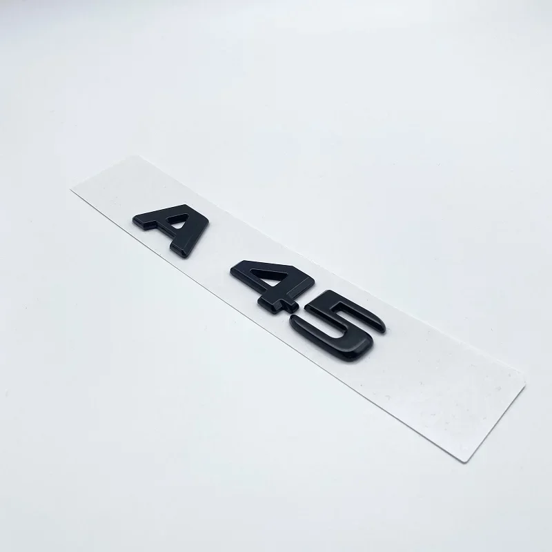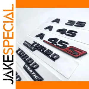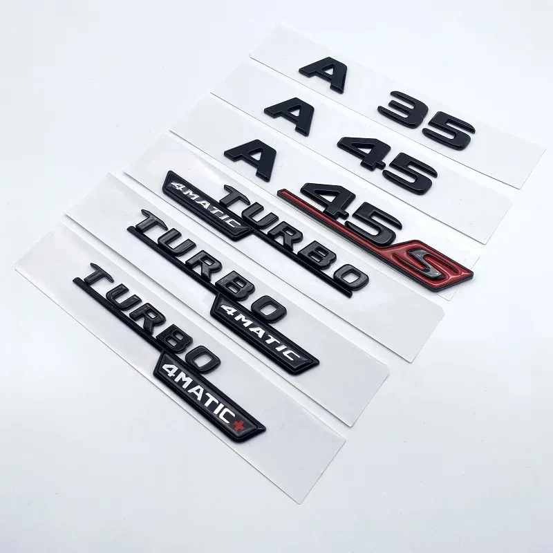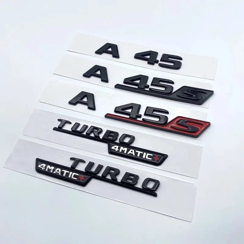 Enhance your Mercedes-Benz AMG with these 3D ABS Glossy Black Letters Emblems, specifically designed for A35, A45, and A45S models. Crafted from durable ABS plastic, these lightweight emblems weigh only 0.04 kg and feature a sleek glossy black finish that exudes sophistication. The flat font style highlights the sporty design, with the “A 45S” emblem showcasing a striking red accent. Included is the “TURBO” emblem, emphasizing performance, along with “4MATIC” to signify all-wheel drive capability. Each emblem features high-quality 3M adhesive for easy, direct application, perfect for enhancing your car’s trunk styling.