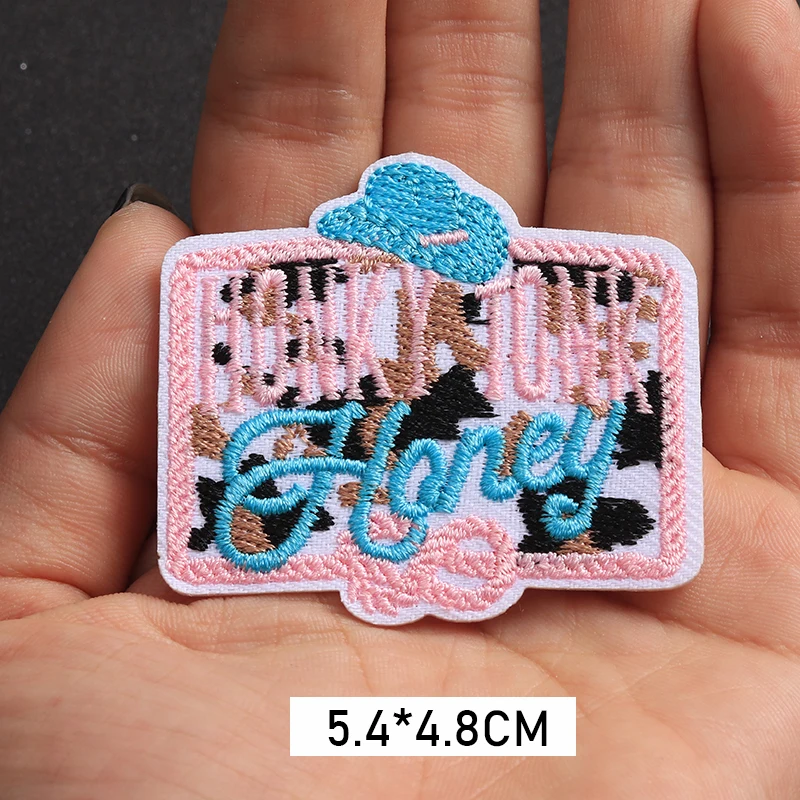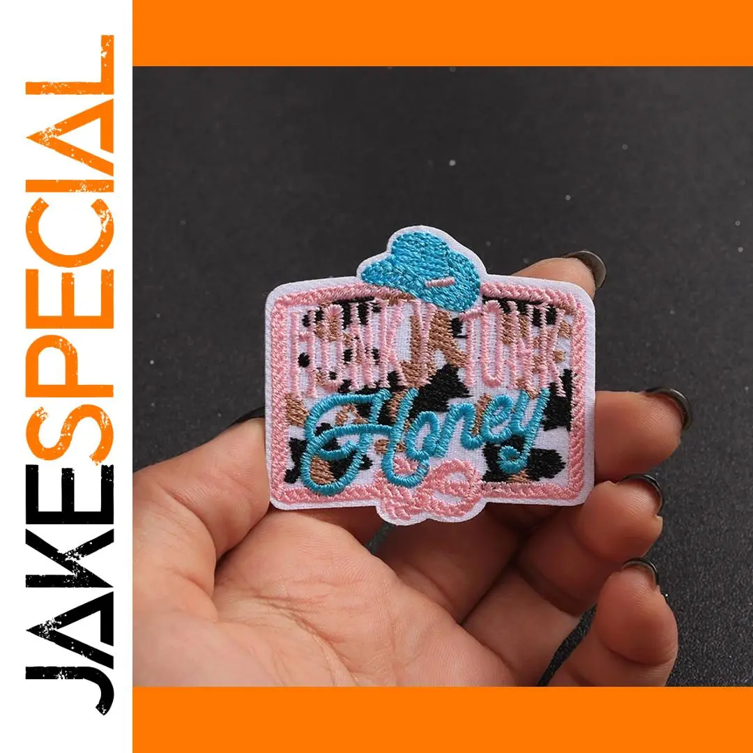 Transform your clothing and accessories with this charming set of 5 fashion cowboy alphabet patches. Each patch measures 5.4 x 4.8 cm and showcases the word “Honey” in a vibrant turquoise cursive font. The delightful blue cowboy hat motif adds a whimsical touch, making these patches perfect for DIY embroidery projects. Made from eco-friendly non-woven fabric, these patches are durable and versatile. Simply use a household iron or heat press machine to apply them effortlessly to your favorite items like t-shirts, bags, and coats. Elevate your style and express your personality with these unique patches that invite creativity.
