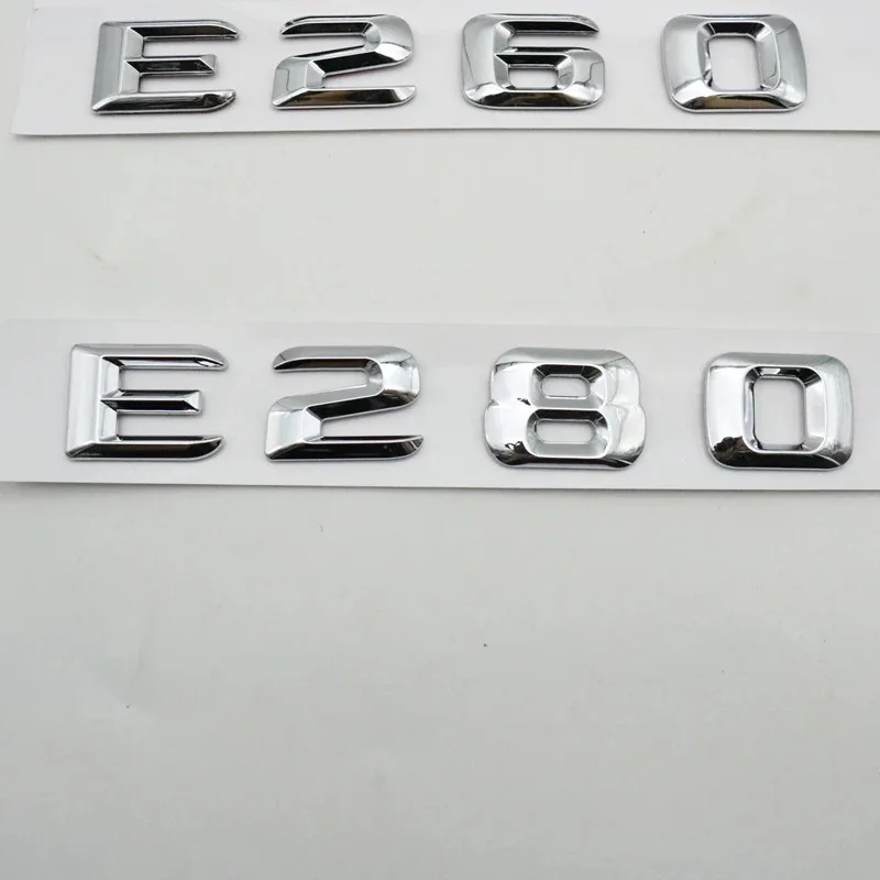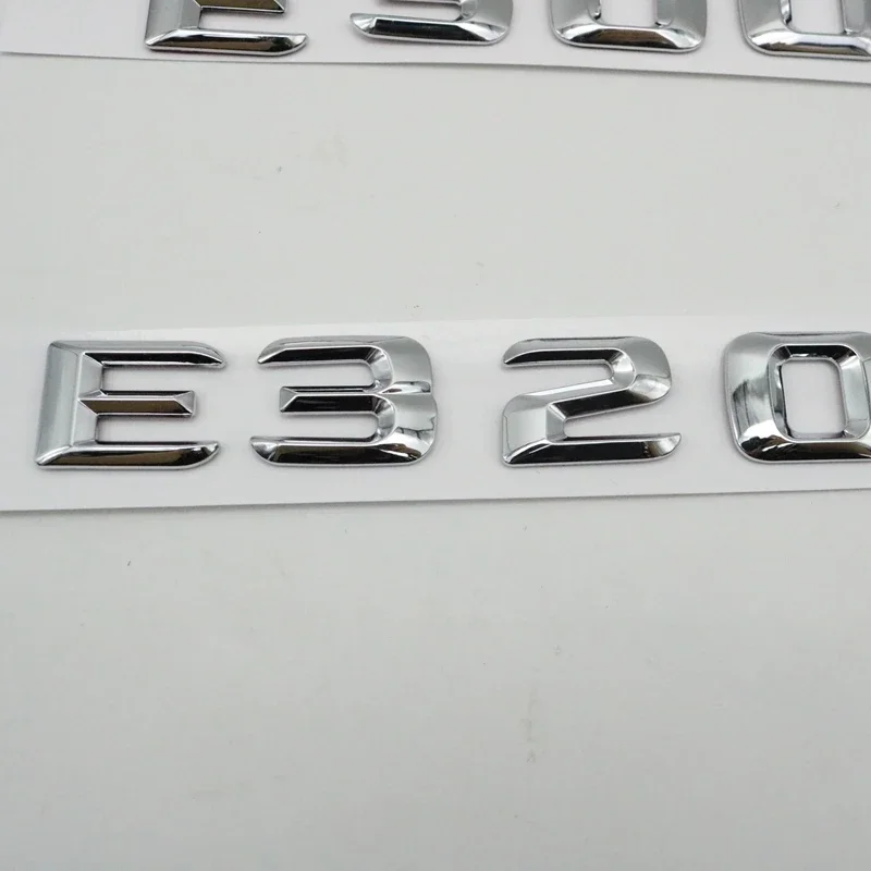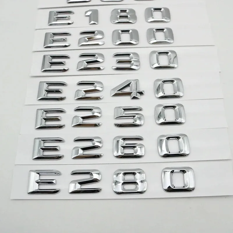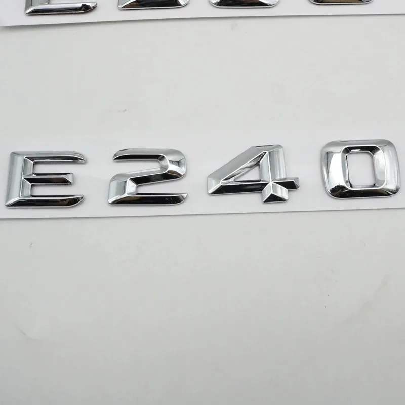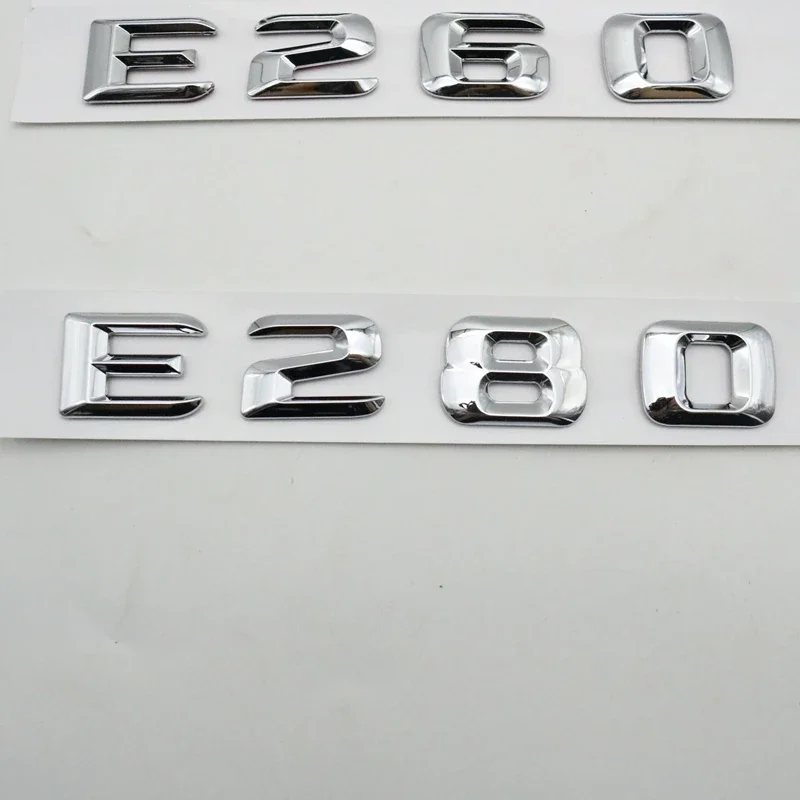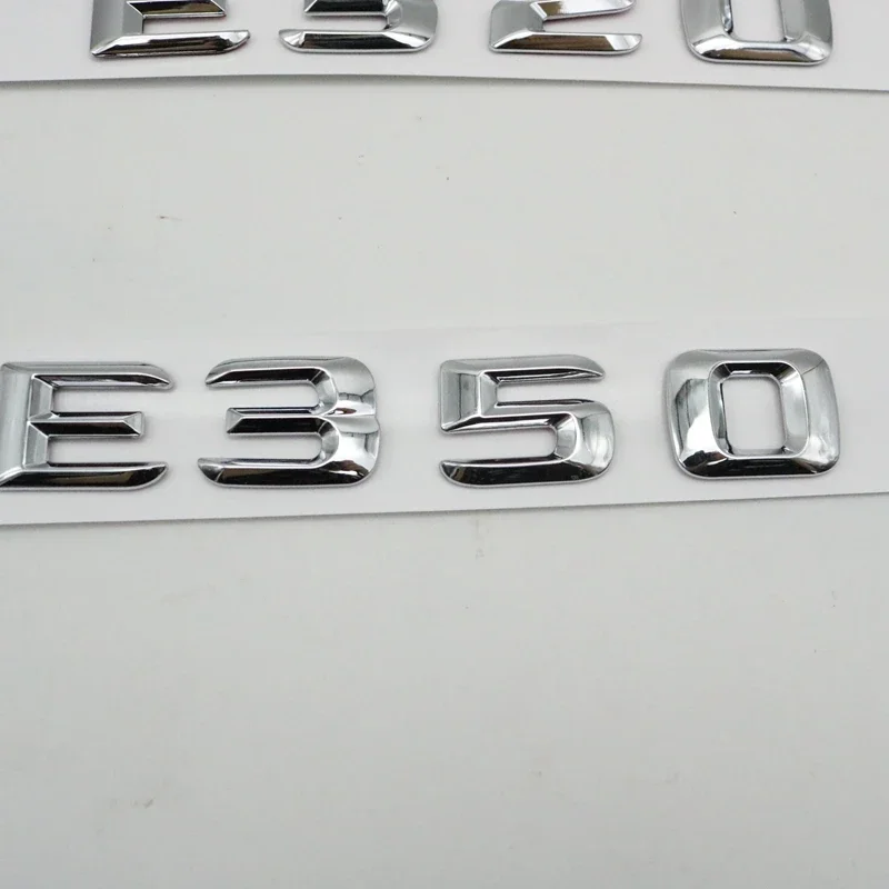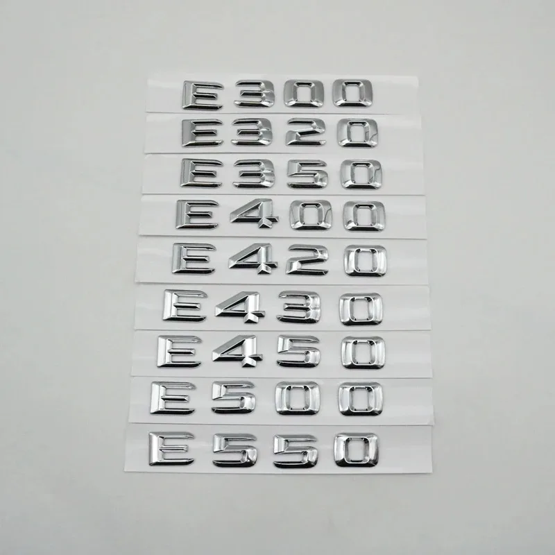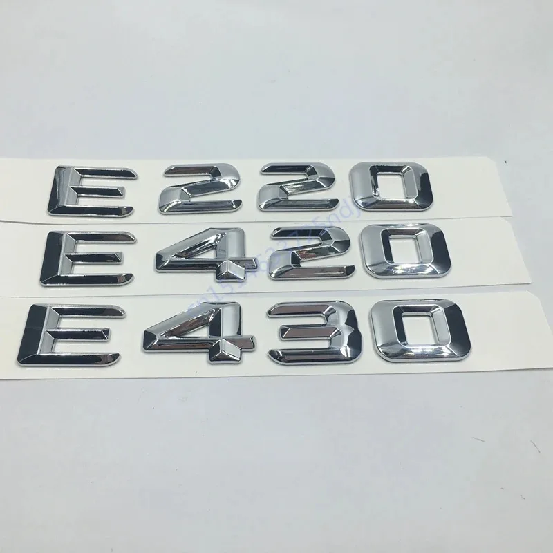 Elevate the appearance of your vehicle with this stunning 3D rear trunk emblem badge designed specifically for the Mercedes-Benz E-Class range. Crafted from high-quality ABS material, the glossy chrome silver finish provides a polished look that seamlessly integrates with your car's aesthetic. This emblem not only represents your model but also enhances visual appeal. Designed for E-Class models including E63, E200, E220, E240, E250, E280, E420, E430, E450, and E550, each letter measures 17 cm in length, 2.4 cm in width, and 0.5 cm in height. The strong adhesive backing allows for easy application and ensures a secure fit without drilling.