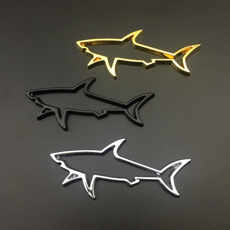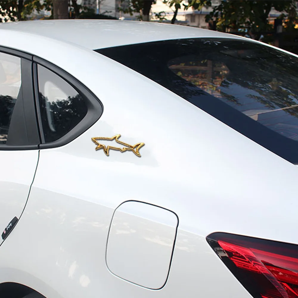 This sleek 3D Metal Hollow Fish Shark Sticker