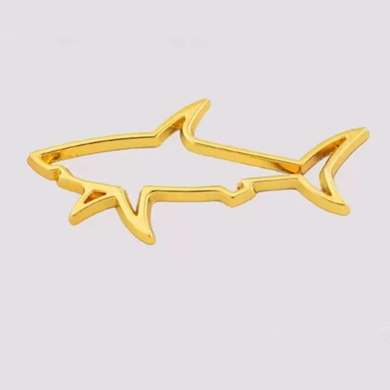 - The metal hollow design mimics a sleek shark or fish outline with precise cut-outs and flowing lines for a stylish look.