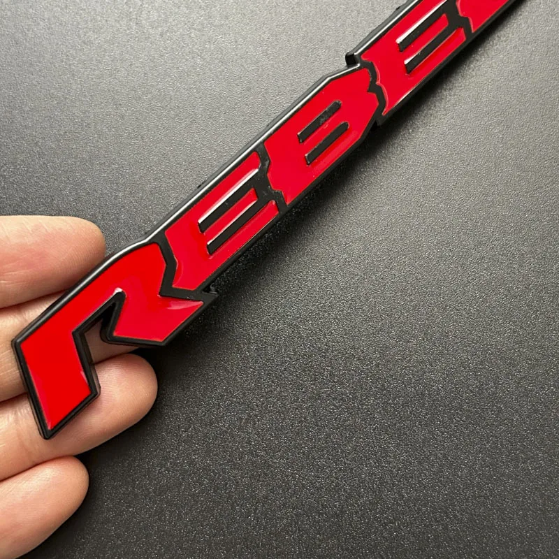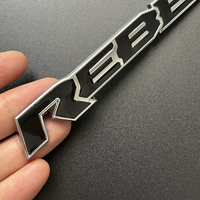 Transform your RAM 1500 or 2500 with this eye-catching 3D metal Rebel emblem, designed to elevate your vehicle's style. Crafted from durable aluminum alloy, this badge features a sleek, polished chrome finish that adds a premium touch to your truck. Its robust design with raised lettering creates a striking three-dimensional effect, making your vehicle stand out with confidence. Available in four bold color options—Rebel-01, Rebel-02, Rebel-03, and Rebel-04—this emblem seamlessly blends modern aesthetics with a rugged, metallic vibe. Measuring approximately 12.8 centimeters long and 1.8 centimeters high, it's perfectly sized for rear trunk or body side customization. Easy to install and built to last, this badge guarantees a personalized, high-quality upgrade for your vehicle.