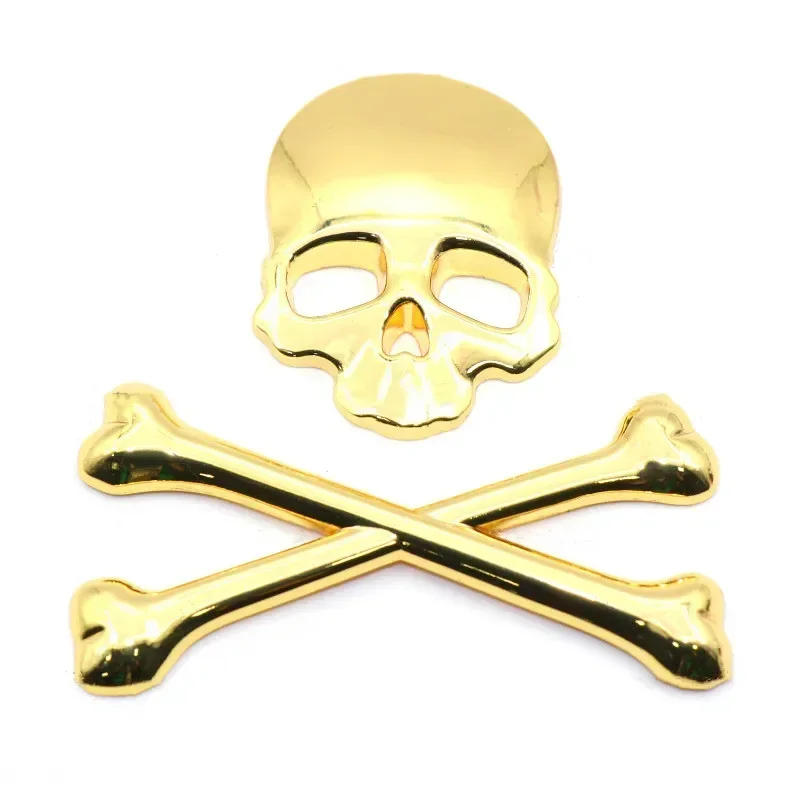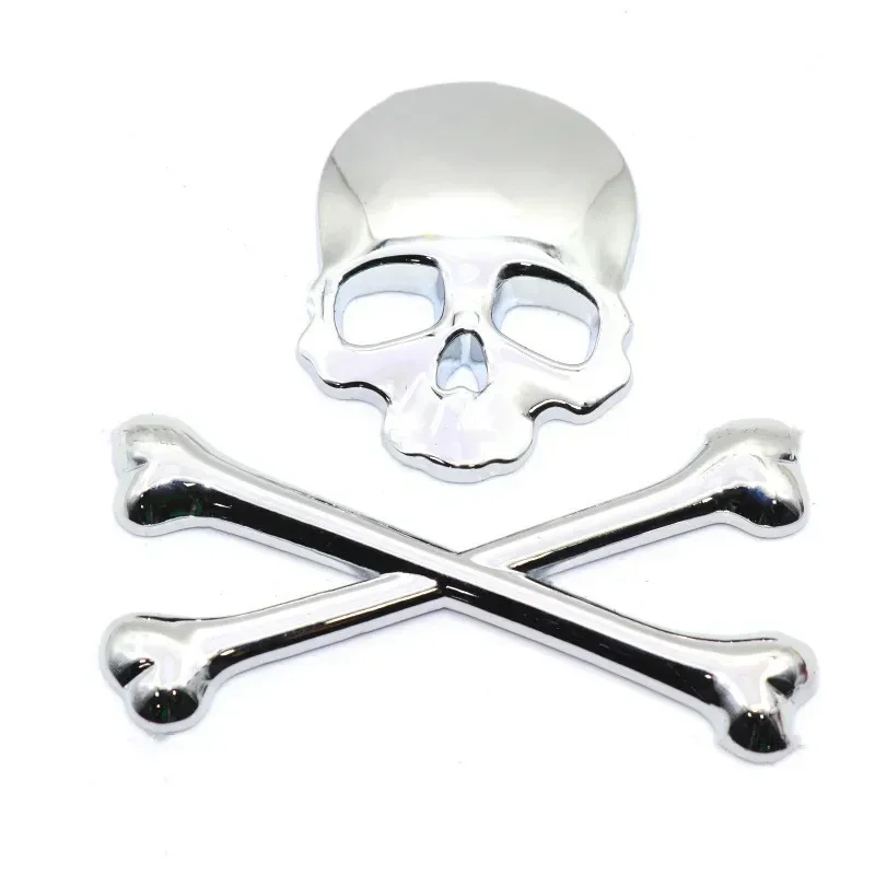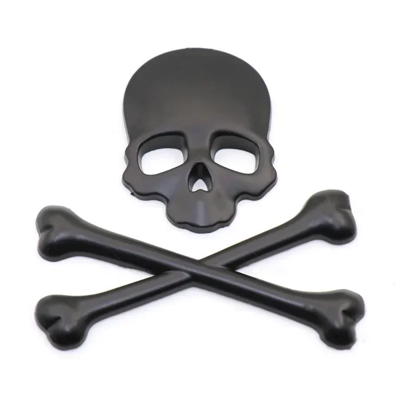 Enhance the personality of your vehicle with this striking 3D Metal Zinc Alloy Skull Skeleton Crossbones sticker, perfectly designed for motorcycles and trucks. Each sticker showcases a bold skull and crossbones design, available in four eye-catching colors: shiny silver, polished gold, sleek matte black, and vibrant red. Constructed from high-quality metal alloy, this sturdy emblem not only adds a fierce touch to your car's exterior but also ensures long-lasting durability. Adorn your bike or truck with this unique decoration, and watch as you turn heads wherever you go. With effortless adhesive application, transforming your vehicle has never been easier.