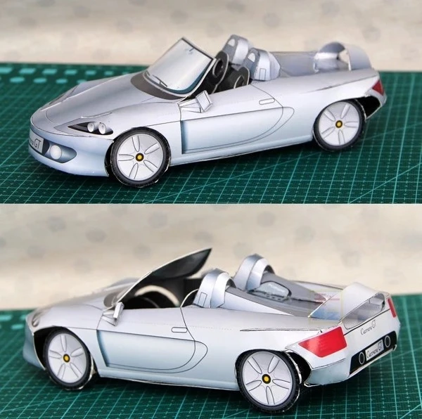 This DIY paper model of a sleek convertible 3D car measures 18 cm in length, 9 cm in width, and 5 cm in height, crafted from high-quality paper for a realistic appearance. Featuring smooth, aerodynamic curves and a polished silver finish, it captures modern automotive design with detailed wheels and an open-top convertible style. Suitable for ages 14 and above, it offers a rewarding manual assembly experience, perfect for transportation enthusiasts and collectors. No high-concern chemicals are involved, ensuring safety. Enhance your collection or enjoy a creative crafting project with this intricately designed papercraft model, showcasing craftsmanship and contemporary style.