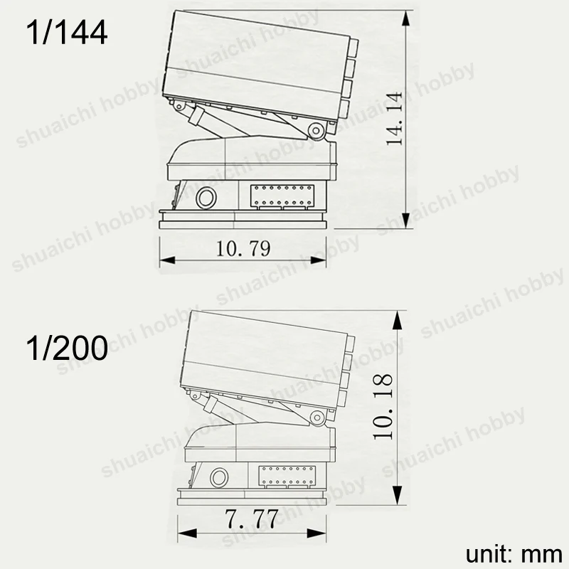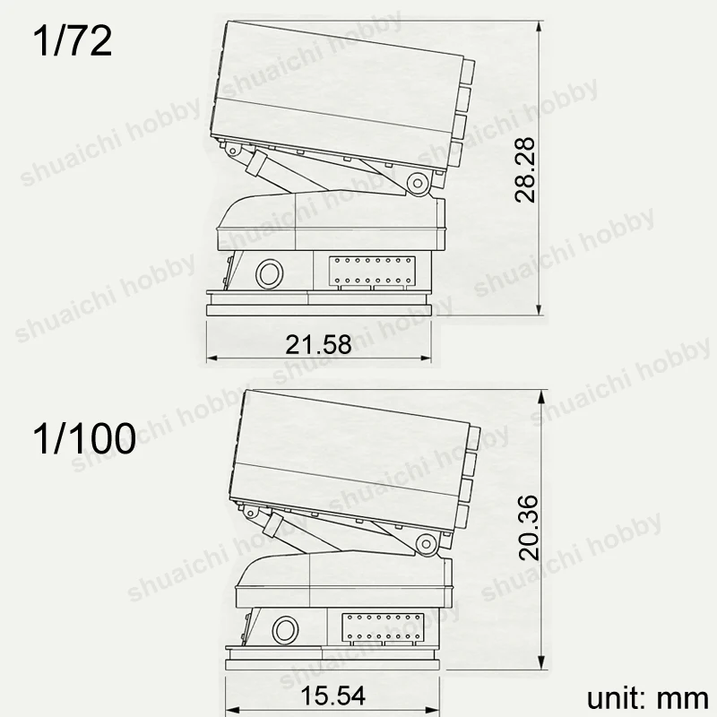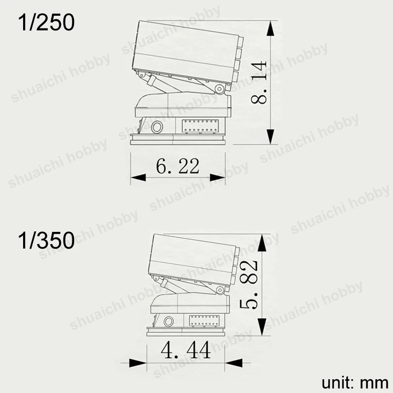 Enhance your naval model collection with this set of two 3D-printed jamming missile launching devices, modeled after the improved 726-4A type. Crafted in a sleek light gray finish, these miniature components feature a realistic design with a flat top and a grid of 18 precisely drilled circular holes on the front face, offering an authentic mechanical appearance. Available in six scale sizes—1/72, 1/100, 1/144, 1/200, 1/250, and 1/350—each measuring from 4.44×5.82mm to 21.58×28.28mm, these models are ideal for DIY ship builds, display, or collection. Made for adult enthusiasts, they combine realism, simplicity, and versatility.