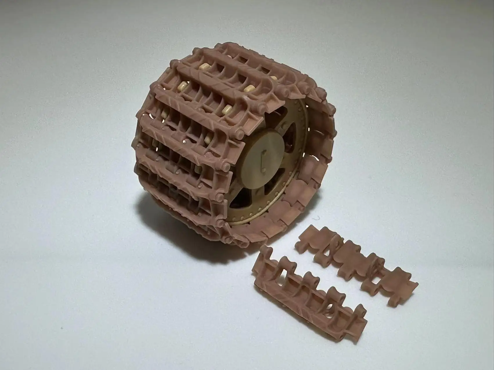 - Features interconnected links and mounting components for easy assembly, mimicking real tank track mechanisms.