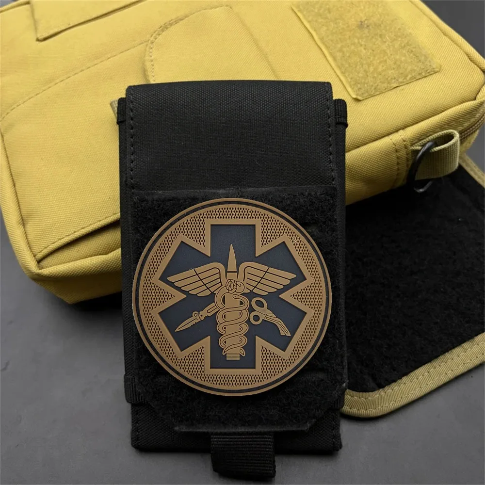 This 3D PVC sticker is designed to enhance your gear with a personalized touch. Featuring a deep navy blue background, the badge prominently showcases a medical symbol with a caduceus entwined by snakes and complemented by graphic scissors, perfect for medical professionals or emergency services personnel. Measuring as depicted in images, it offers flexible use on jackets, backpacks, helmets, and more. The durable PVC material ensures longevity, while the hook and loop backing allows for easy attachment and removal, making it a practical addition to your equipment. Embrace functionality and style with this unique badge that reflects your commitment to medical excellence.