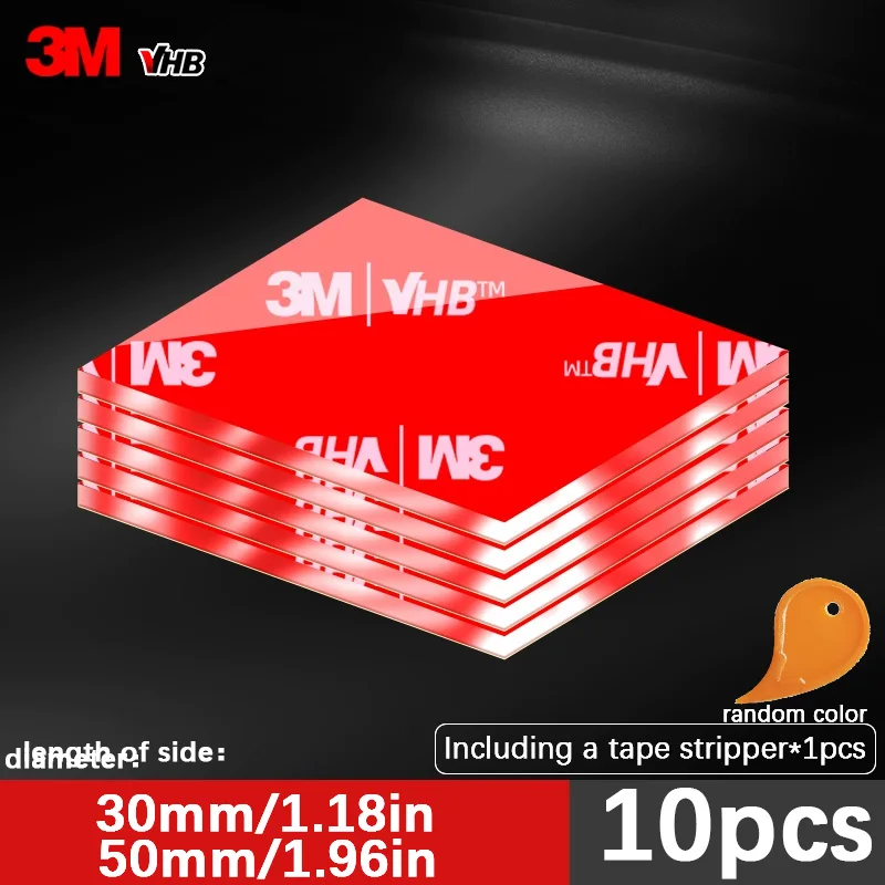 Experience reliable and strong adhesion with this 3M VHB transparent double-sided foam tape, designed for versatile use in vehicles and home projects. Available in widths of 30mm or 50mm, it comes in sets of round or square shapes—10 or 4 pieces each—featuring a seamless, smooth surface with high cohesion strength. The tape’s clear design ensures a discreet finish, and it can be easily removed without residue, making it perfect for delicate or cracked surfaces. It reaches optimal bonding after 24 hours and benefits from heating in low temperatures to maximize stickiness. Crafted without concerning chemicals, this foam tape offers excellent durability, flexibility, and residue-free removal for long-lasting results.