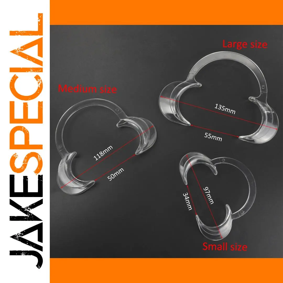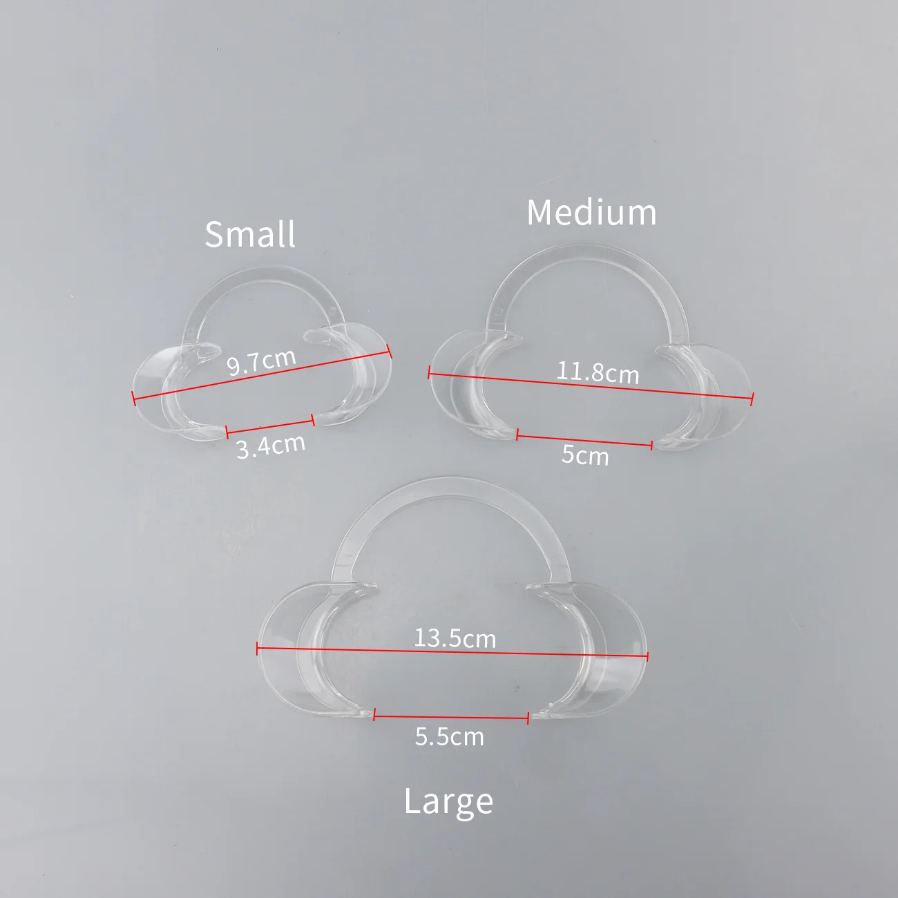 Experience the comfort and ease this 3pcs Dental C-shape Cheek Retractor offers during dental procedures. Made from high-quality plastic, these transparent mouth openers are designed to provide an unobstructed view of the oral cavity. Suitable for various dental treatments such as tooth whitening, orthodontics, and oral exams, they ensure safety and hygiene with compatibility for sterilization and autoclaving. Their smooth surface guarantees patient comfort, making your work more efficient and pleasant. Whether you're a professional dentist or a dedicated patient, this set ensures durability and practicality with multiple sizes to suit different needs. Simplify your dental routines and enhance your practice with this reliable tool.