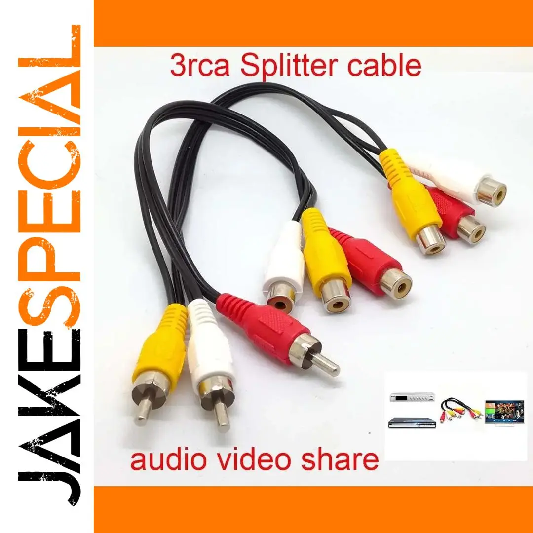 Experience seamless audio-visual connections with this high-quality 3RCA male to 6RCA female splitter cable. Measuring approximately 26cm, it provides a sturdy, flexible link between devices like DVD players, gaming consoles, and TVs. Its sleek black design features polished metal connectors with color-coded plastic shells for easy identification: yellow for video, red and white for stereo audio. The textured grips ensure simple handling, making setup quick and straightforward. Crafted for durability and dependable performance, this cable is ideal for sharing multiple AV signals through a single outlet, enhancing your home entertainment system with a clean, organized look. It’s the practical solution for multi-device connections without sacrificing quality or simplicity.