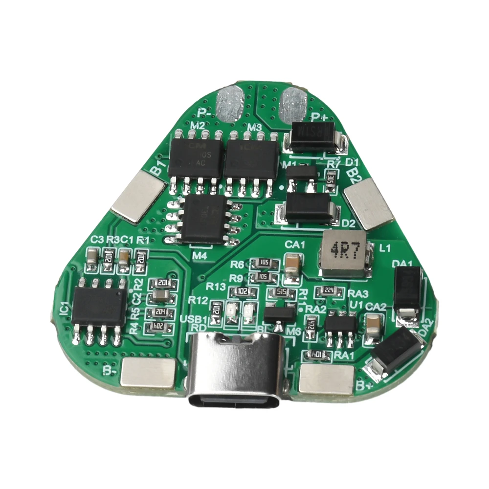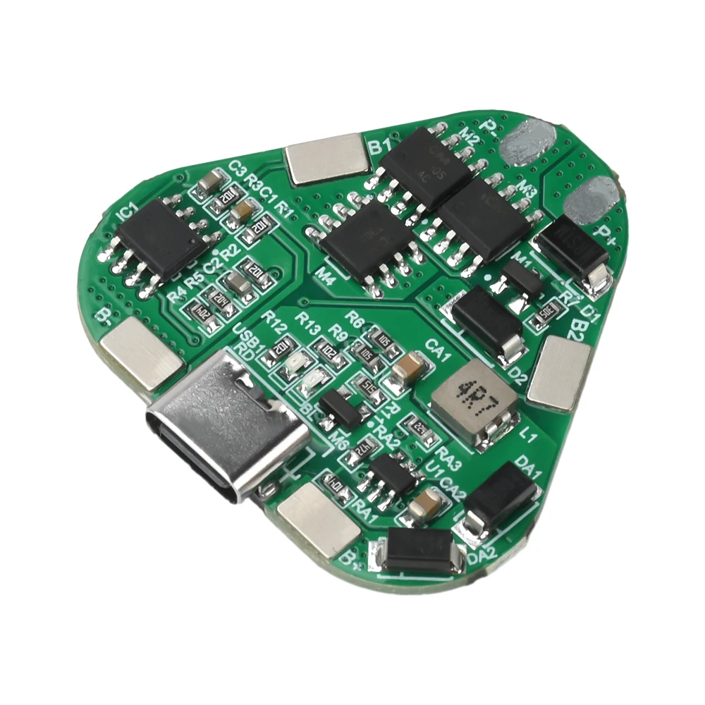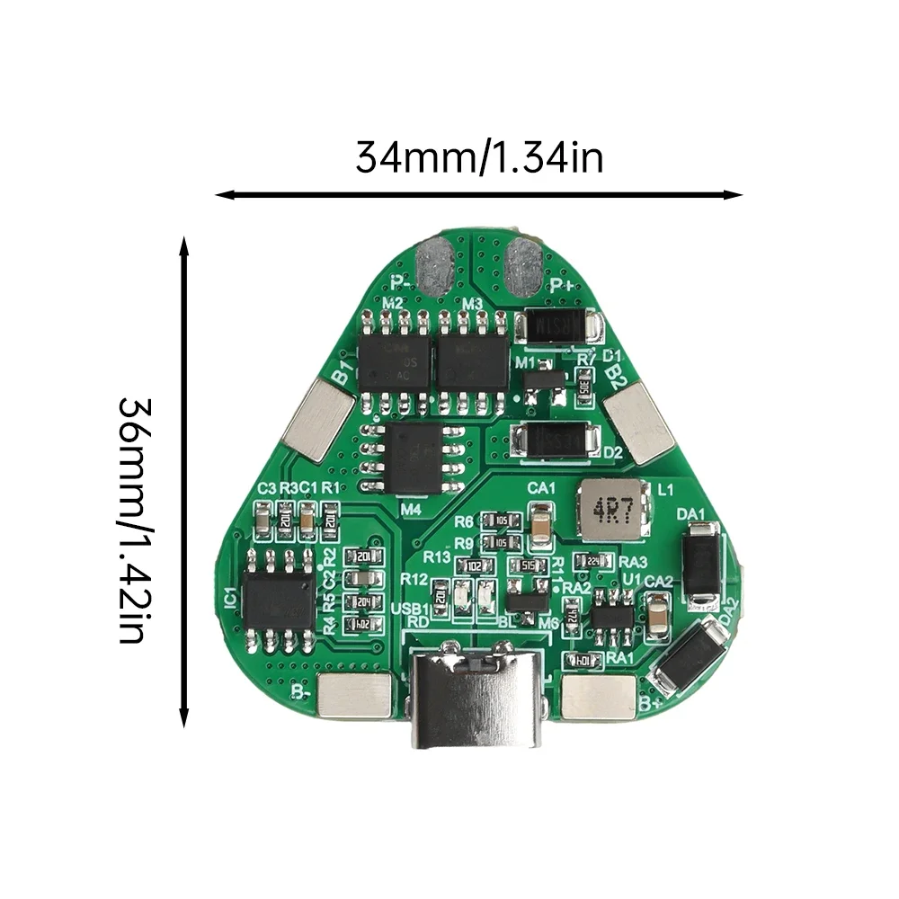 This compact 3S 12V 20A lithium battery protection board features a sleek green design with white silkscreen markings, measuring 35mm by 36mm with a height of 4mm. Equipped with a convenient Type-C charging port, it offers overcharge protection at 4.25V ± 25mV, overdischarge protection at 2.7V ± 25mV, and overcurrent protection up to 20A ± 3A, all while safeguarding against short circuits with a 250-microsecond response. Its modern, streamlined appearance highlights precise engineering, making it ideal for integrating into electric and garden tools requiring reliable battery management within operational temperatures of -20°C to 70°C and humidity levels up to 75%.